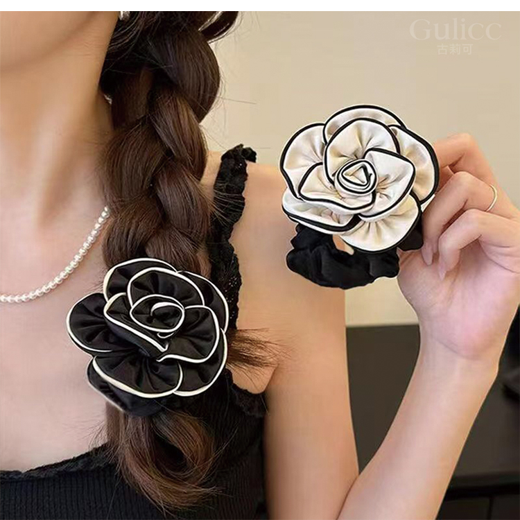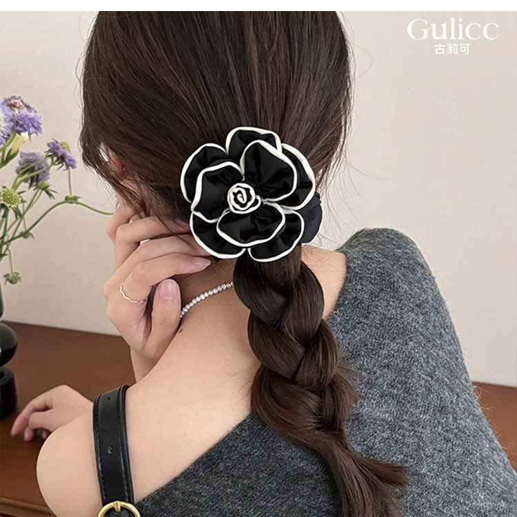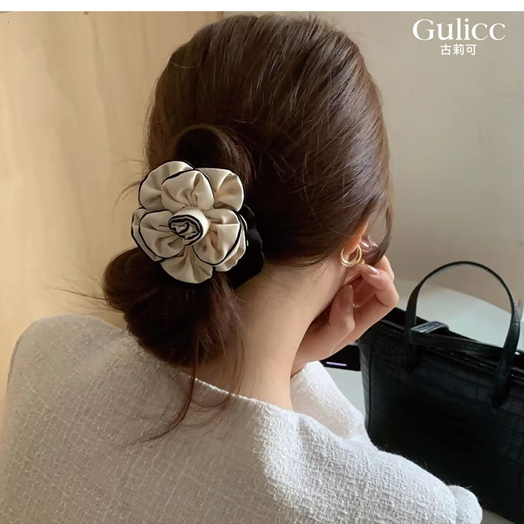 【Gulicc】法式小香風 時尚山茶花 髮圈(雙11 聖誕節 生日 髮飾 頭飾 鯊魚夾 抓夾 禮物)