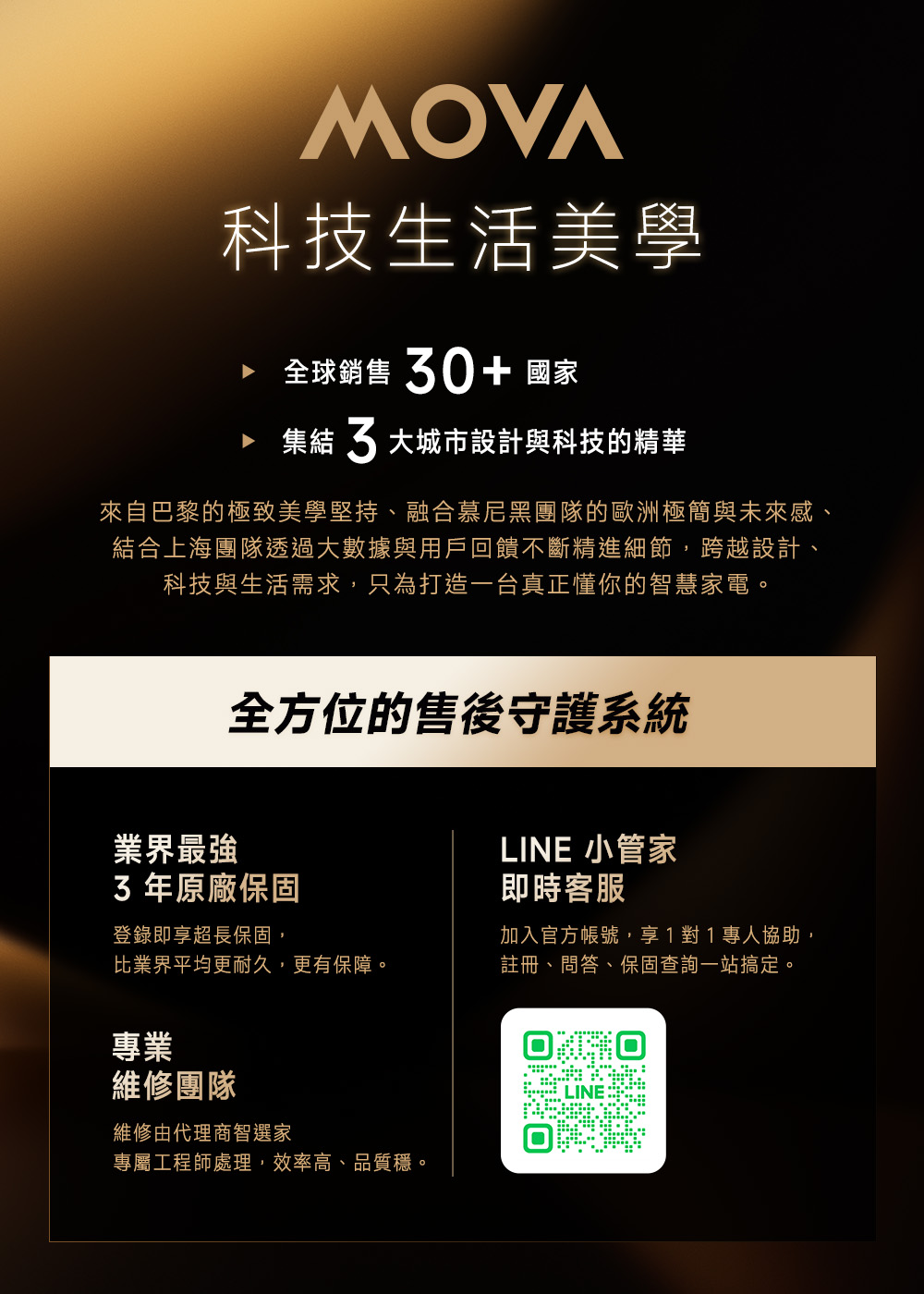 保固依據憑彩盒貼膜上的產品條碼貼紙,3個月內登錄保固,享有保固/延長保固,未登錄保固、撕毀、遺失,視同無效保固,保固詳情請見MOVA官網