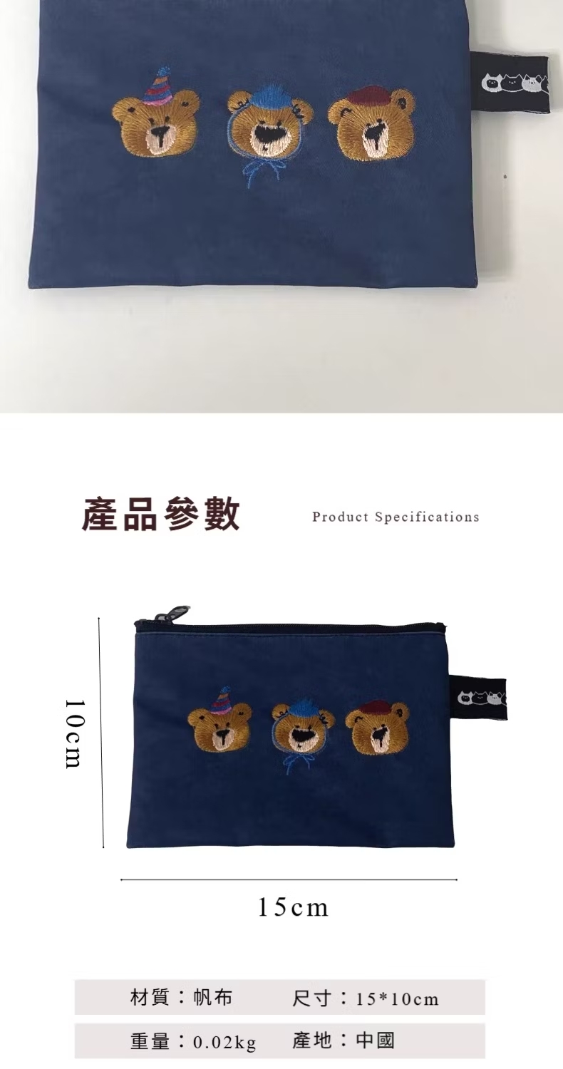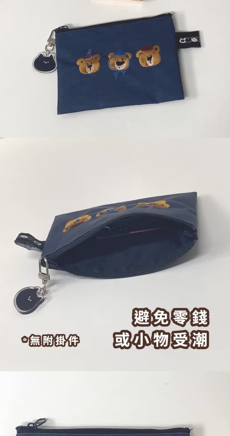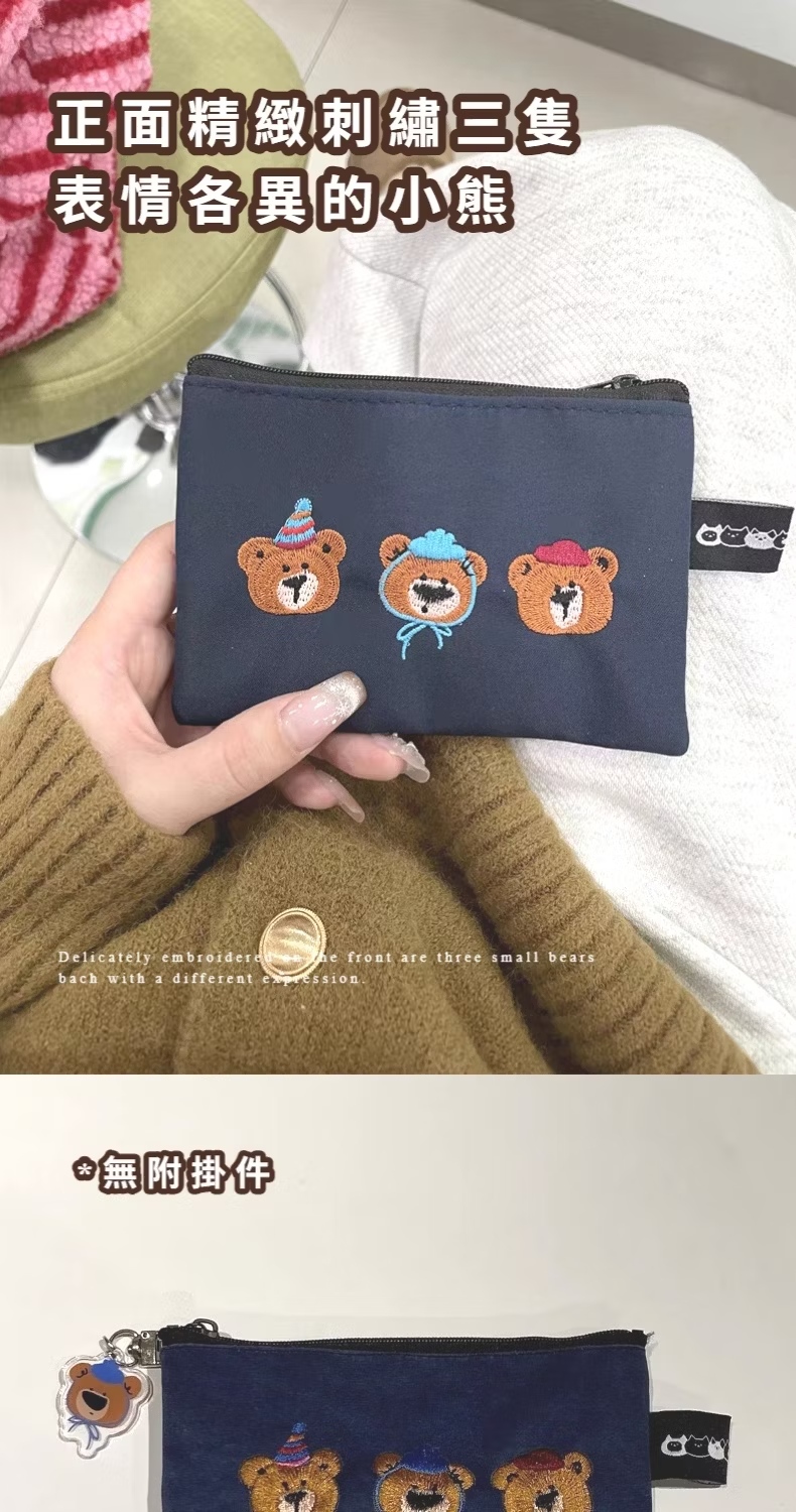 【可愛小包】雙11 三隻小熊刺繡零錢包(信用卡夾 卡包 收納包 手拿包 多功能 帆布 卡夾)