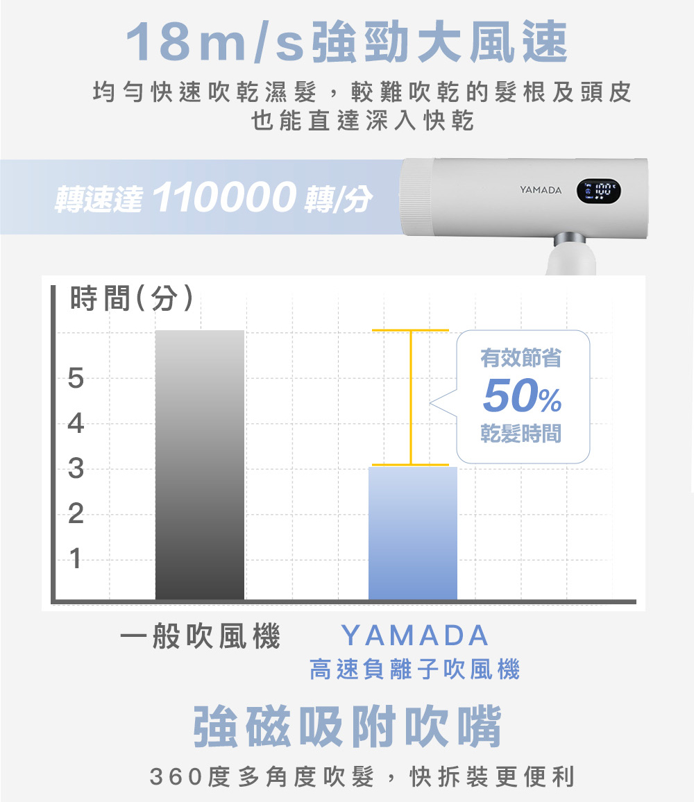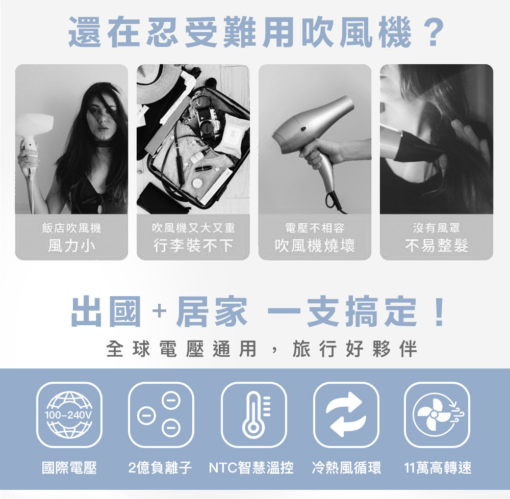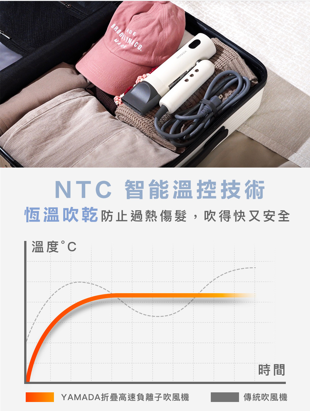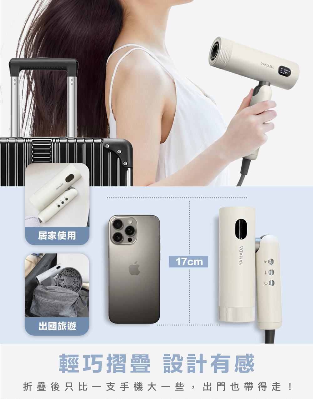 【YAMADA 山田家電】國際電壓摺疊負離子吹風機(國際電壓/高速大風量快乾/可摺疊好攜帶/居家出國多用)