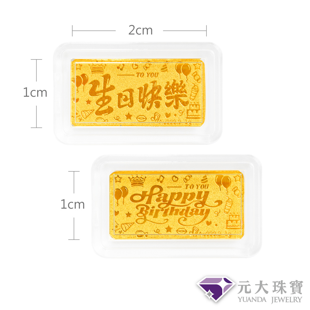 【元大珠寶】雙11黃金金塊金條 生日快樂(金重0.27錢)