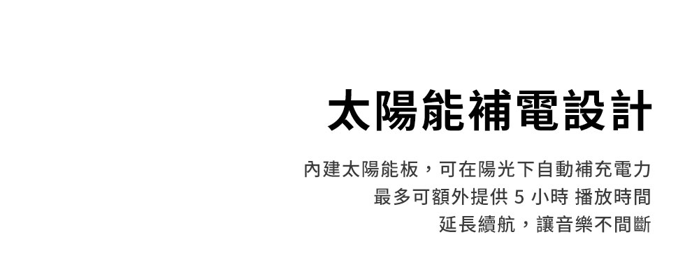 日曬充電|內建太陽能板可提升5Hr播放時間