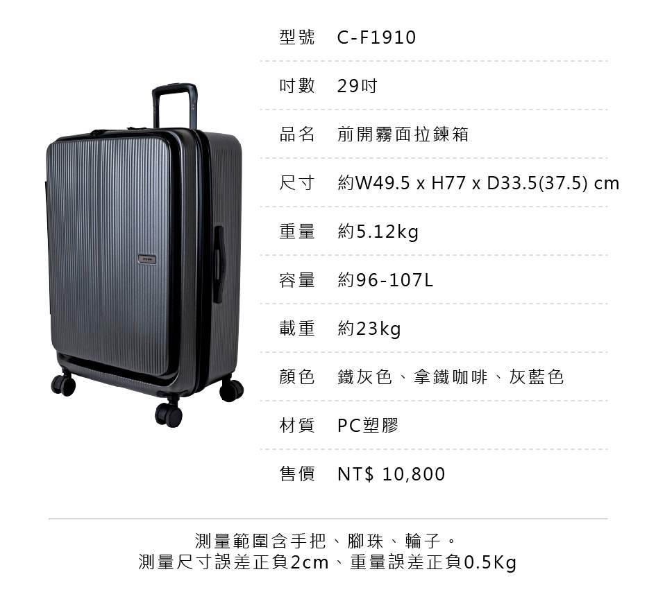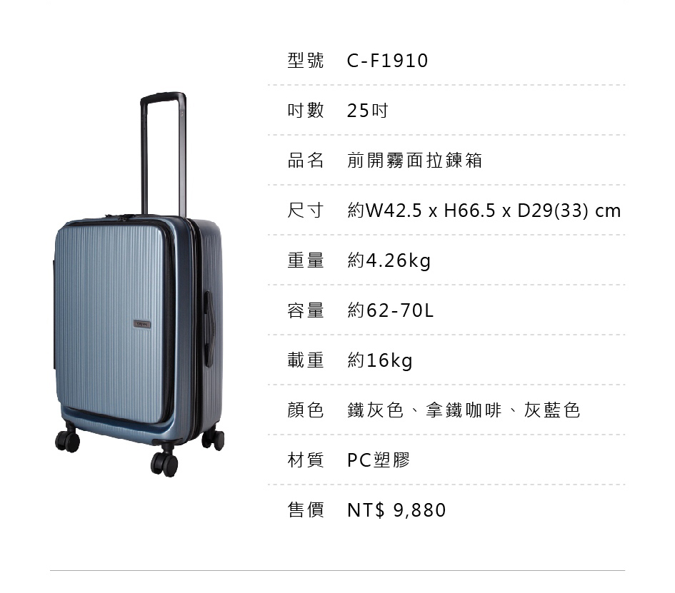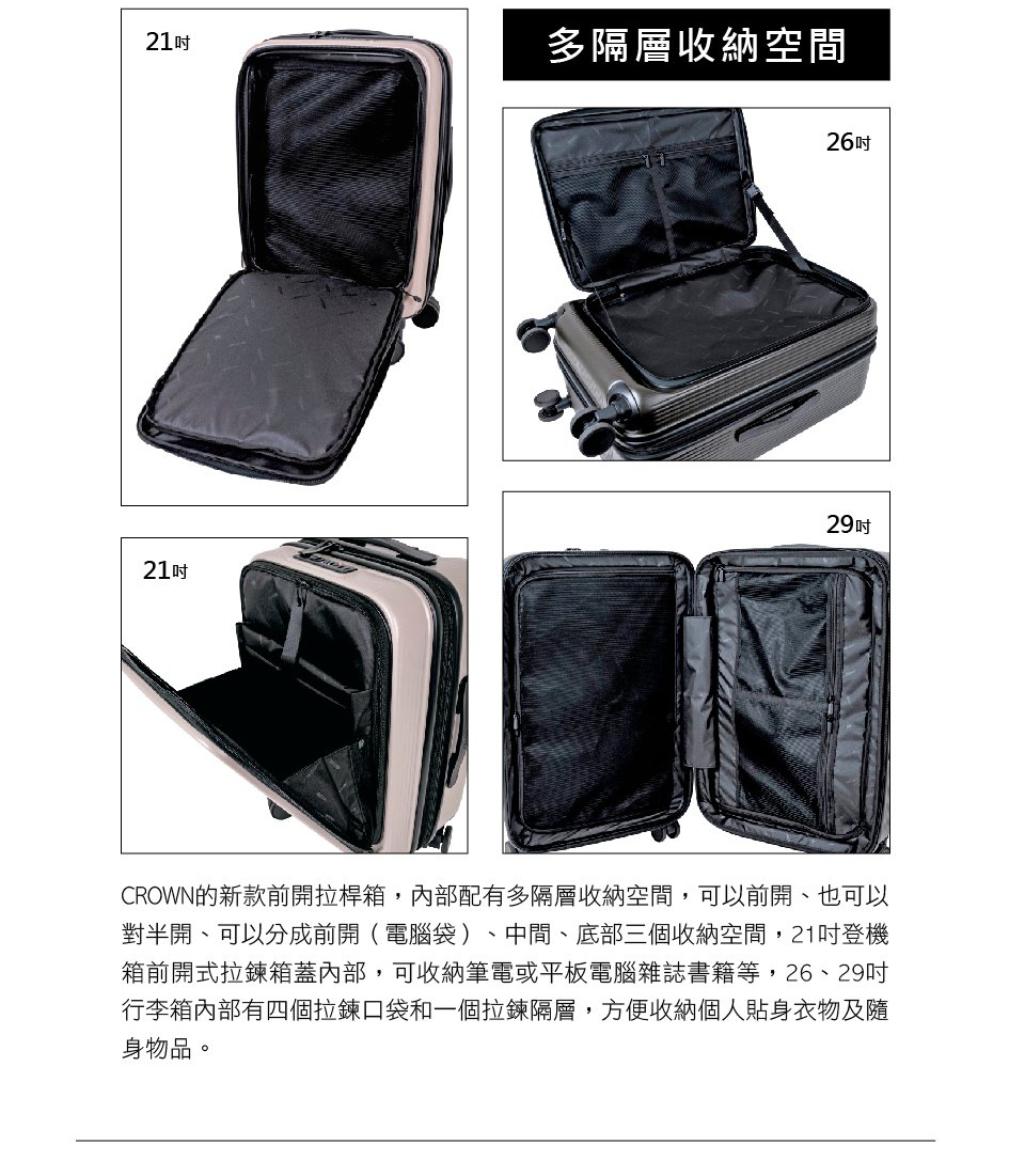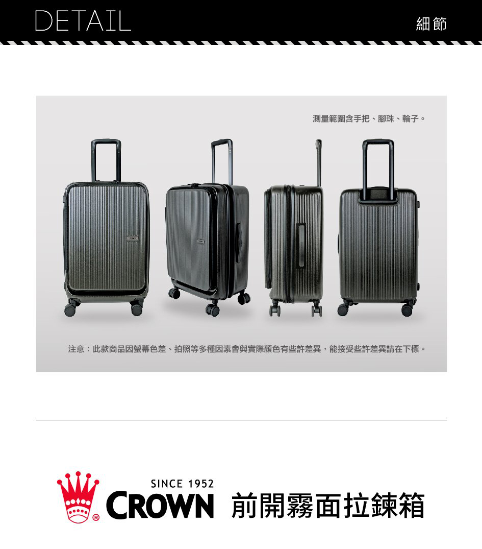 【CROWN 皇冠】DOPPIO 25吋 前開式霧面拉鍊 拉桿箱(行李箱/旅行箱/密碼鎖)