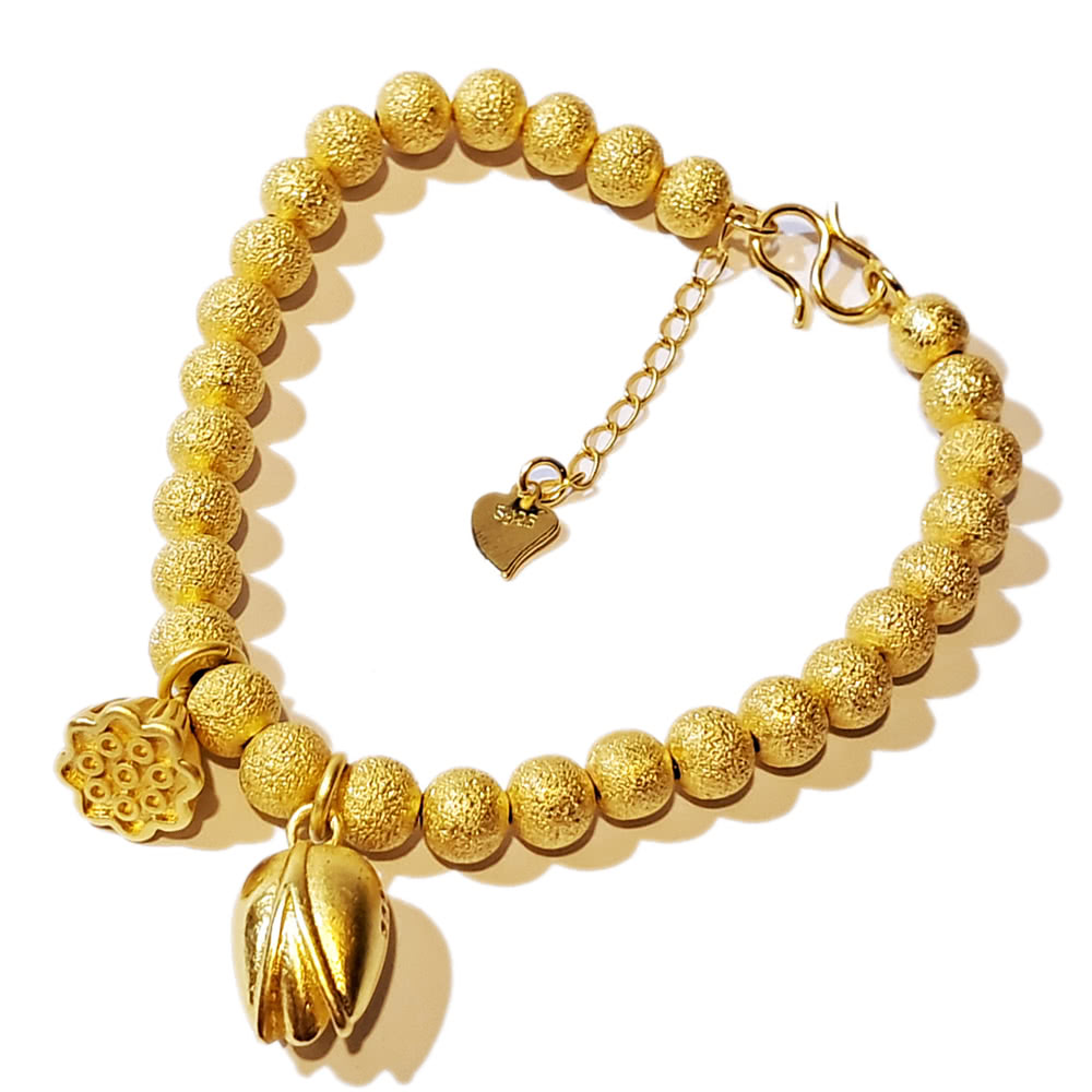 【十方佛教文物】金蓮蓬 沙金手鍊6mm(大悲咒加持108遍以上)