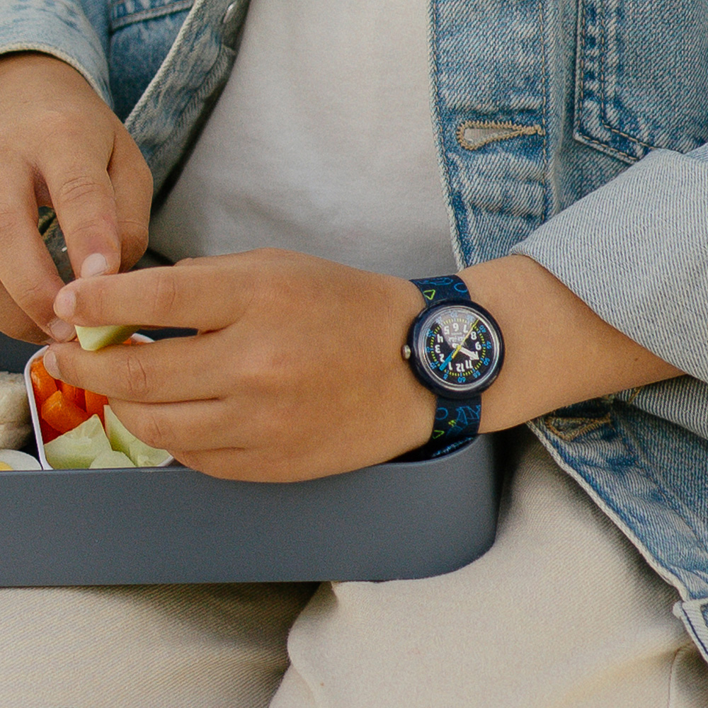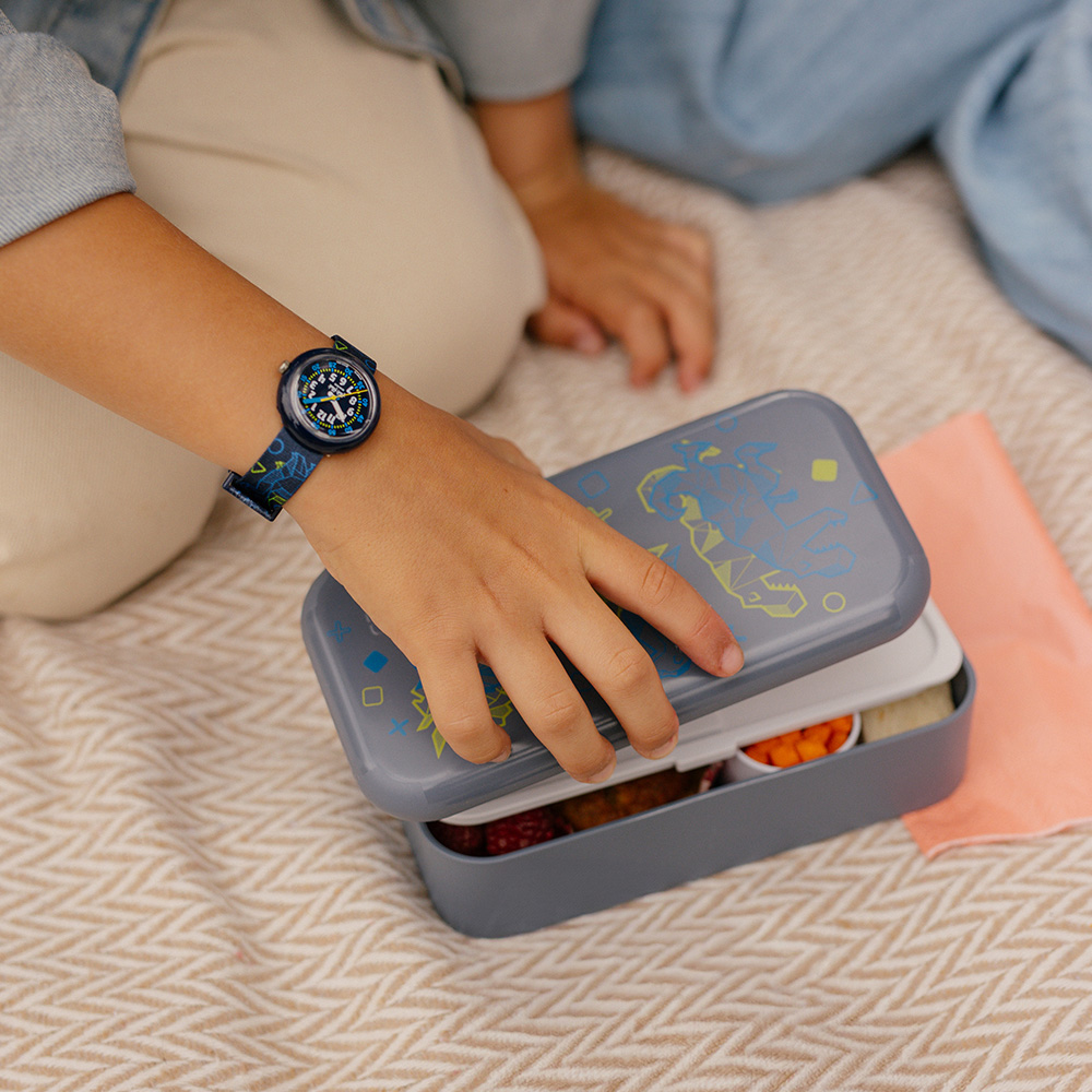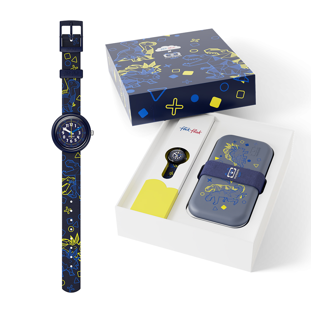 【Flik Flak】兒童手錶 DINO DINER monbento便當盒套組/瑞士製造 FPNP176(31.85mm)