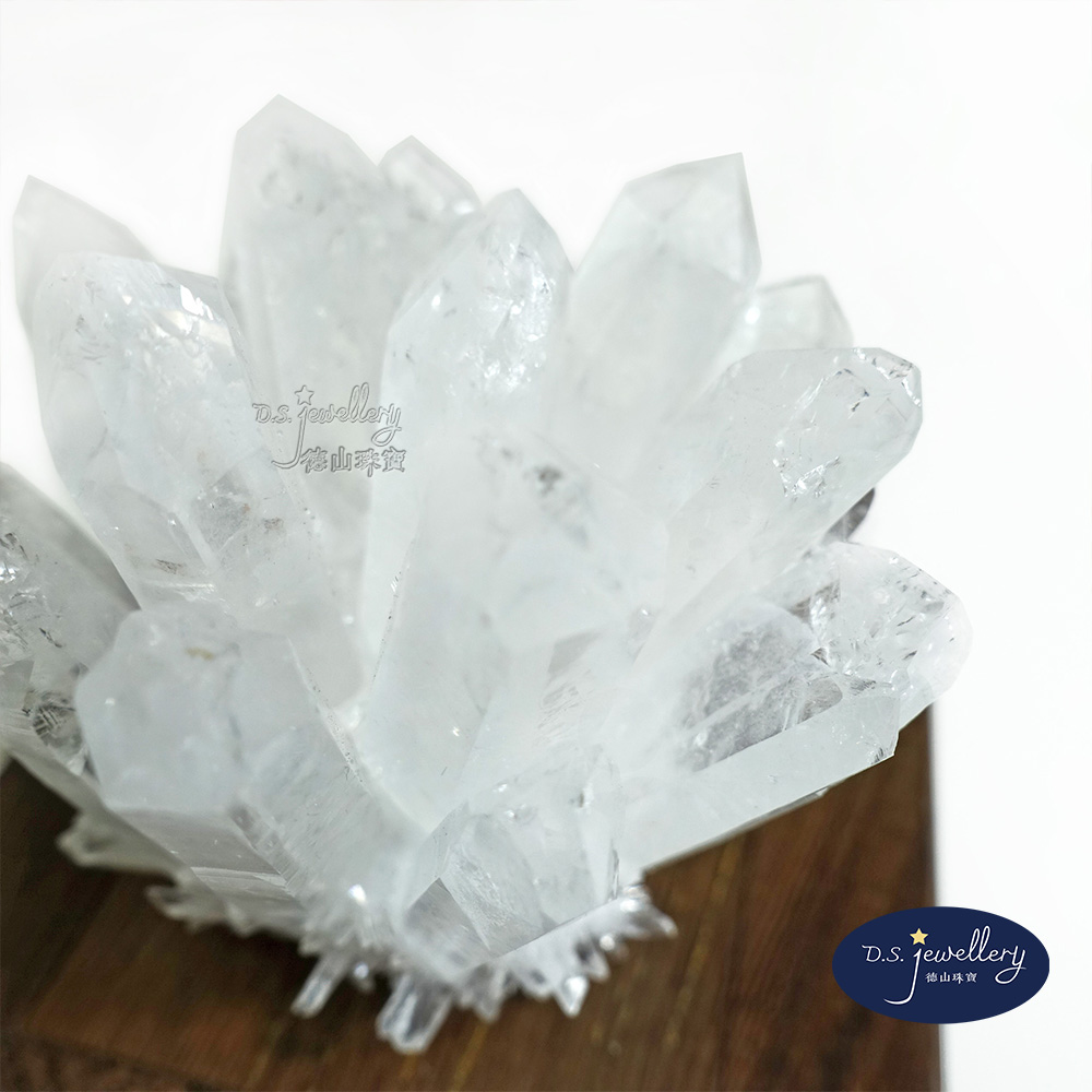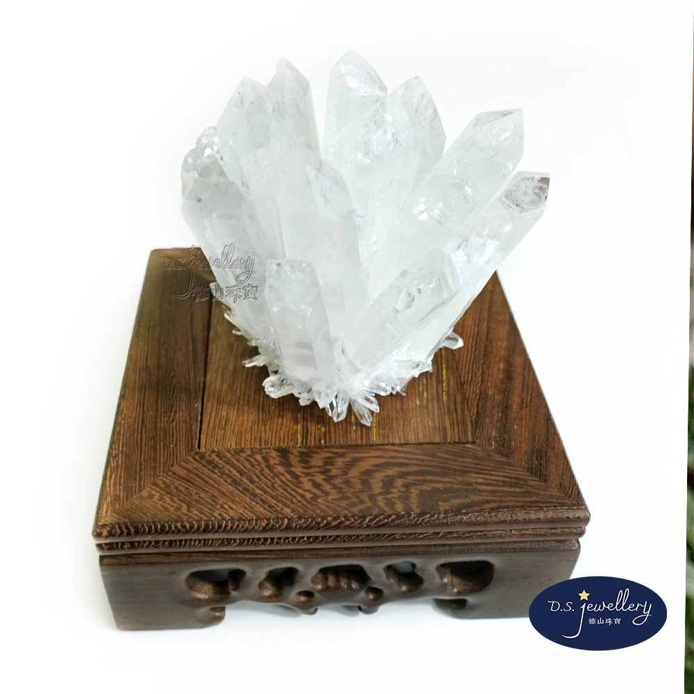 【德山珠寶】消磁淨化水晶天然白水晶簇附雞翅木座 (情人節生日禮物飾品母親節/CE476)