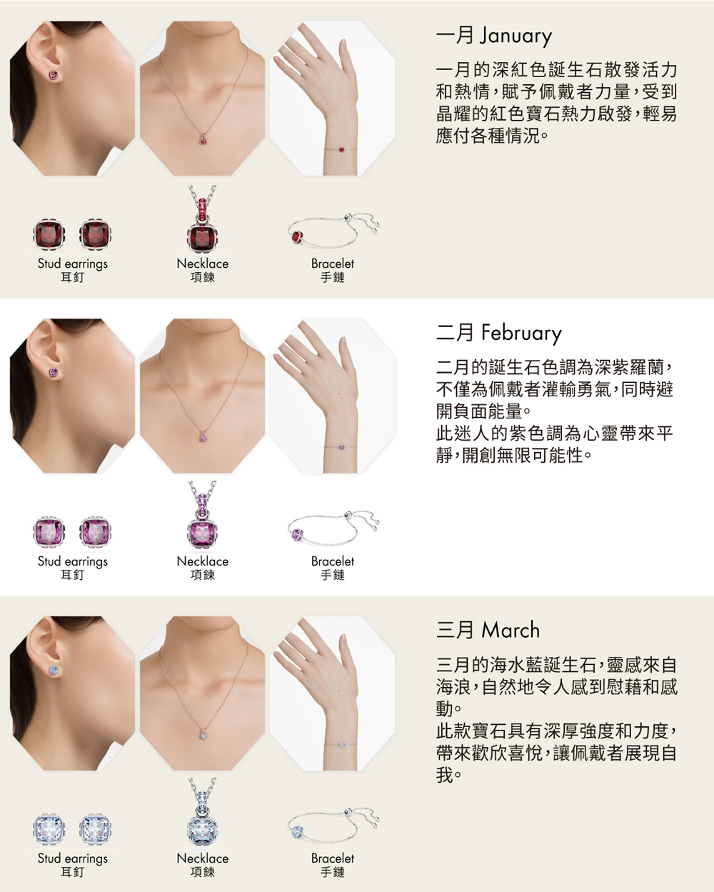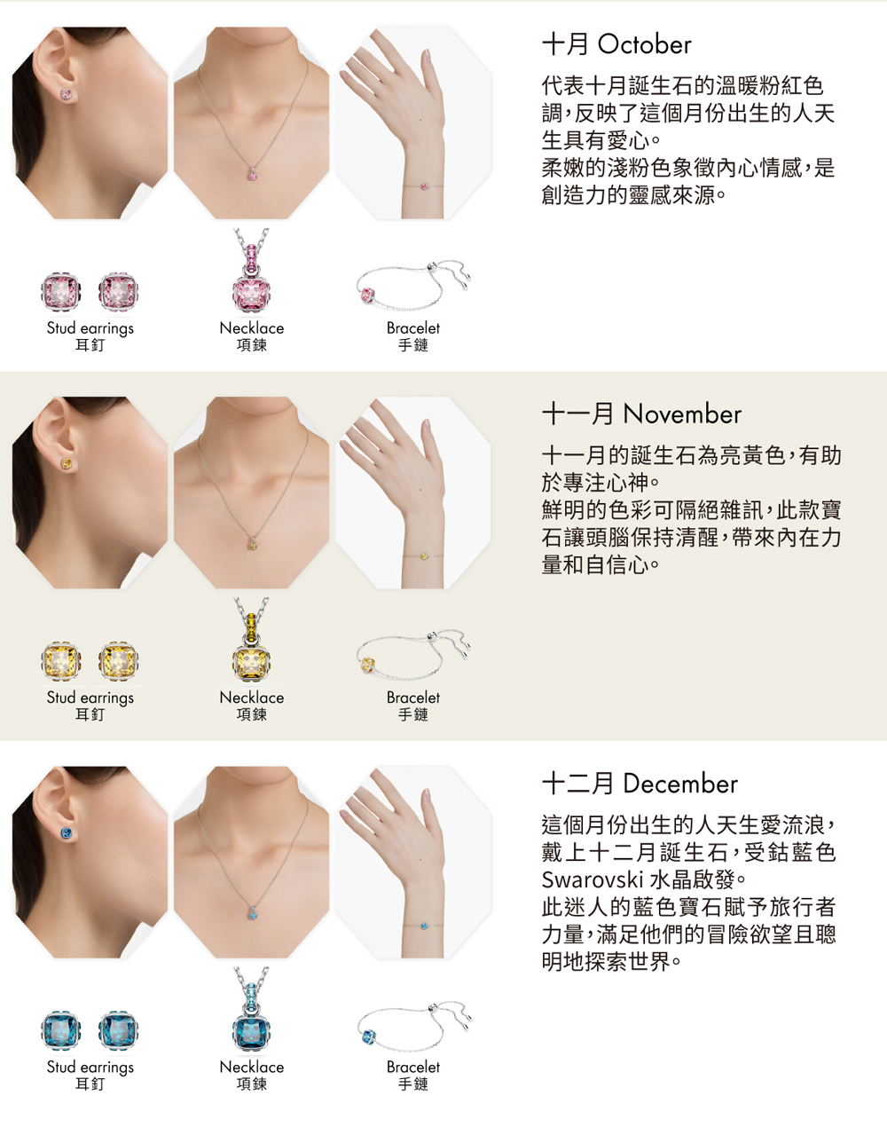 【SWAROVSKI 施華洛世奇】Birthstone 手鏈 方形切割 鍍白金色(12色任選_情人節禮物)
