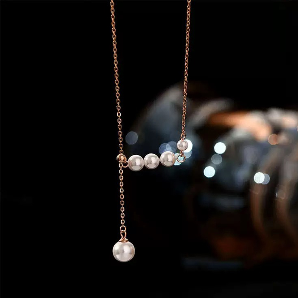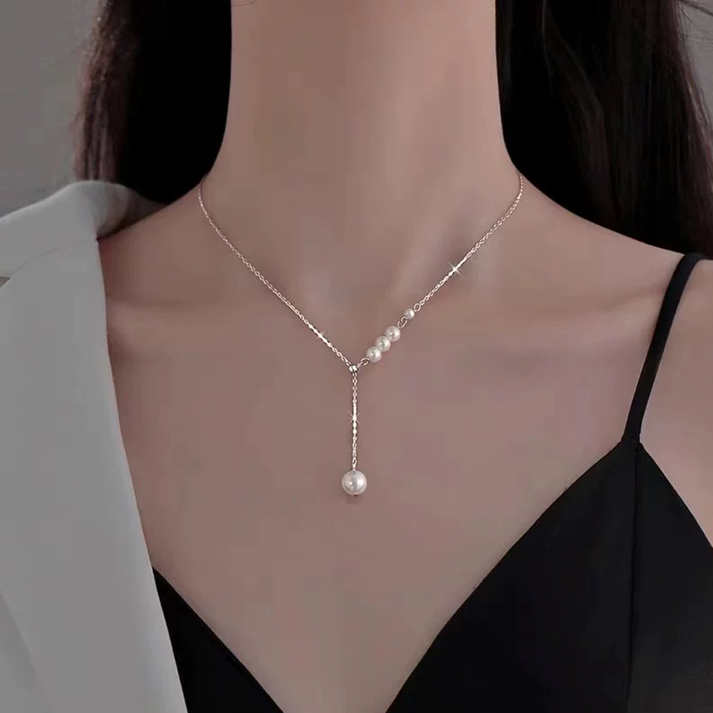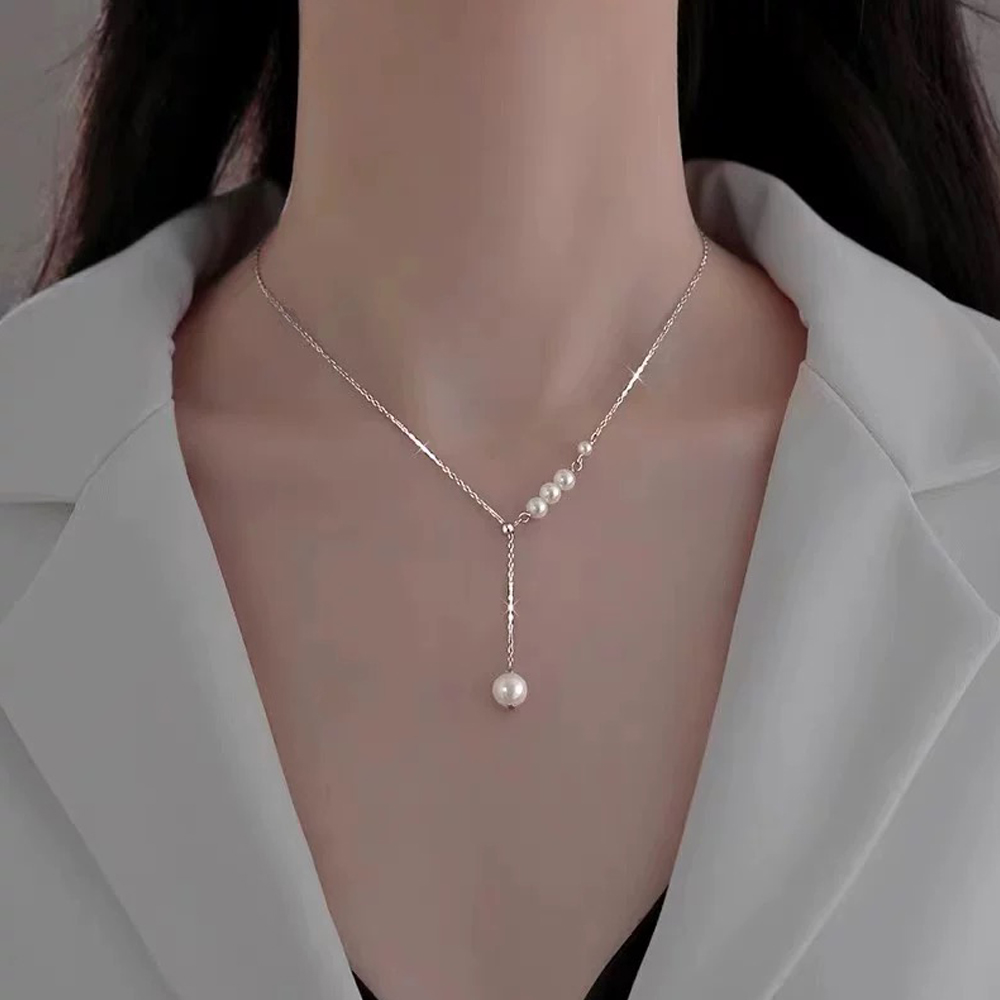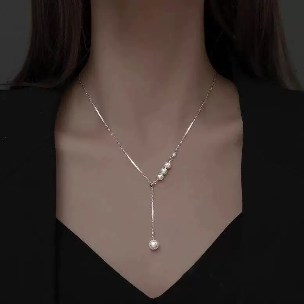 【SUMMER 一夏】韓國設計珍珠抽拉式珍珠吊墜毛衣鍊Y字鍊小眾輕奢鎖骨鍊項鍊(ins韓風)