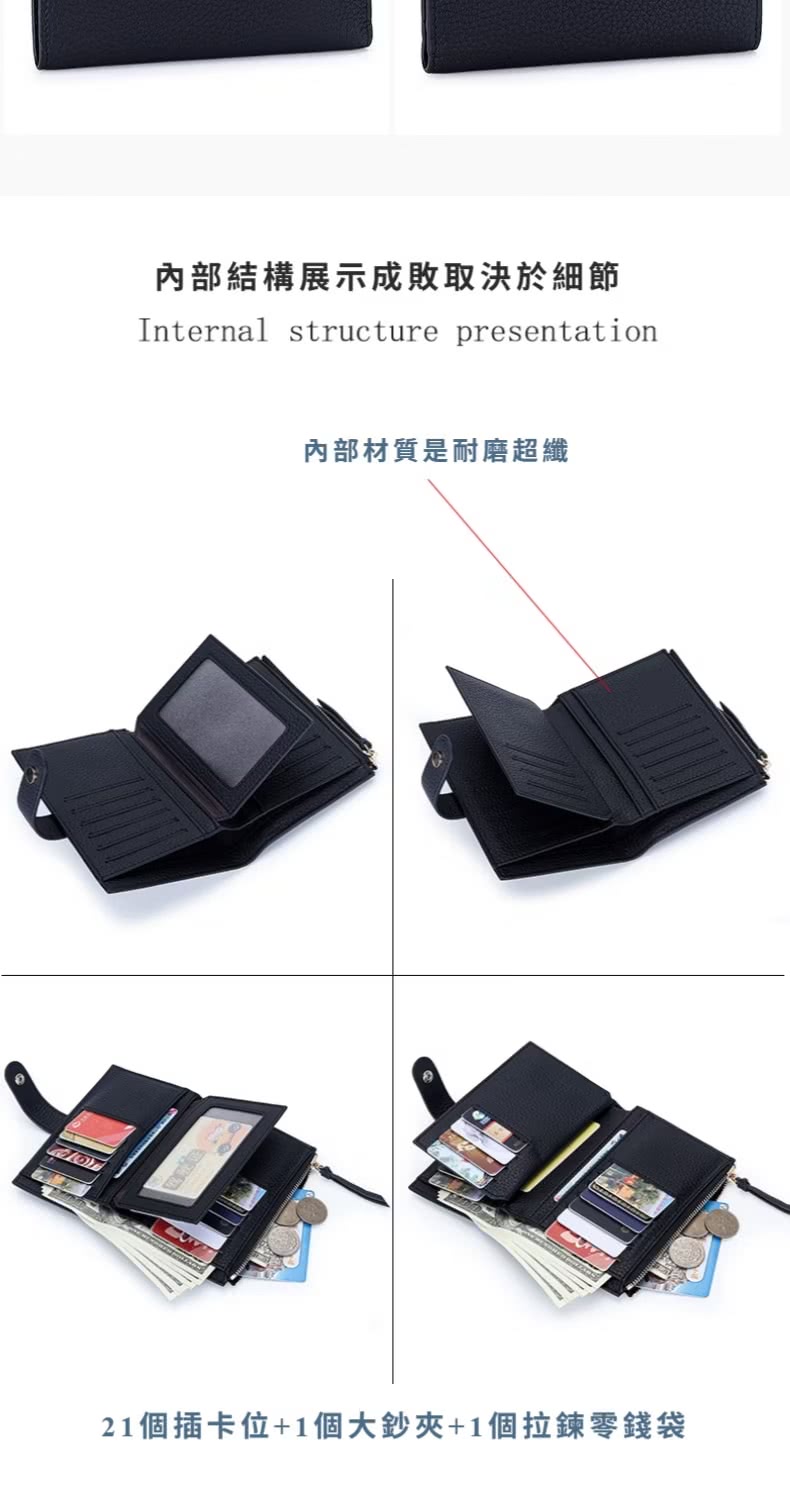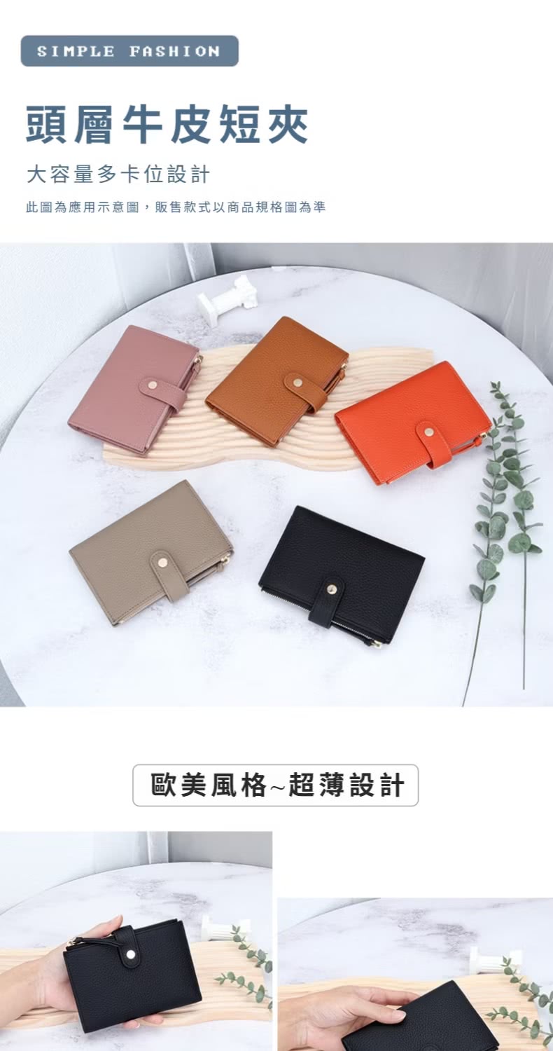 【日系單品】雙11 百搭真皮多卡位短款皮夾(牛皮短夾 零錢包 票卡夾 禮物 黑色)