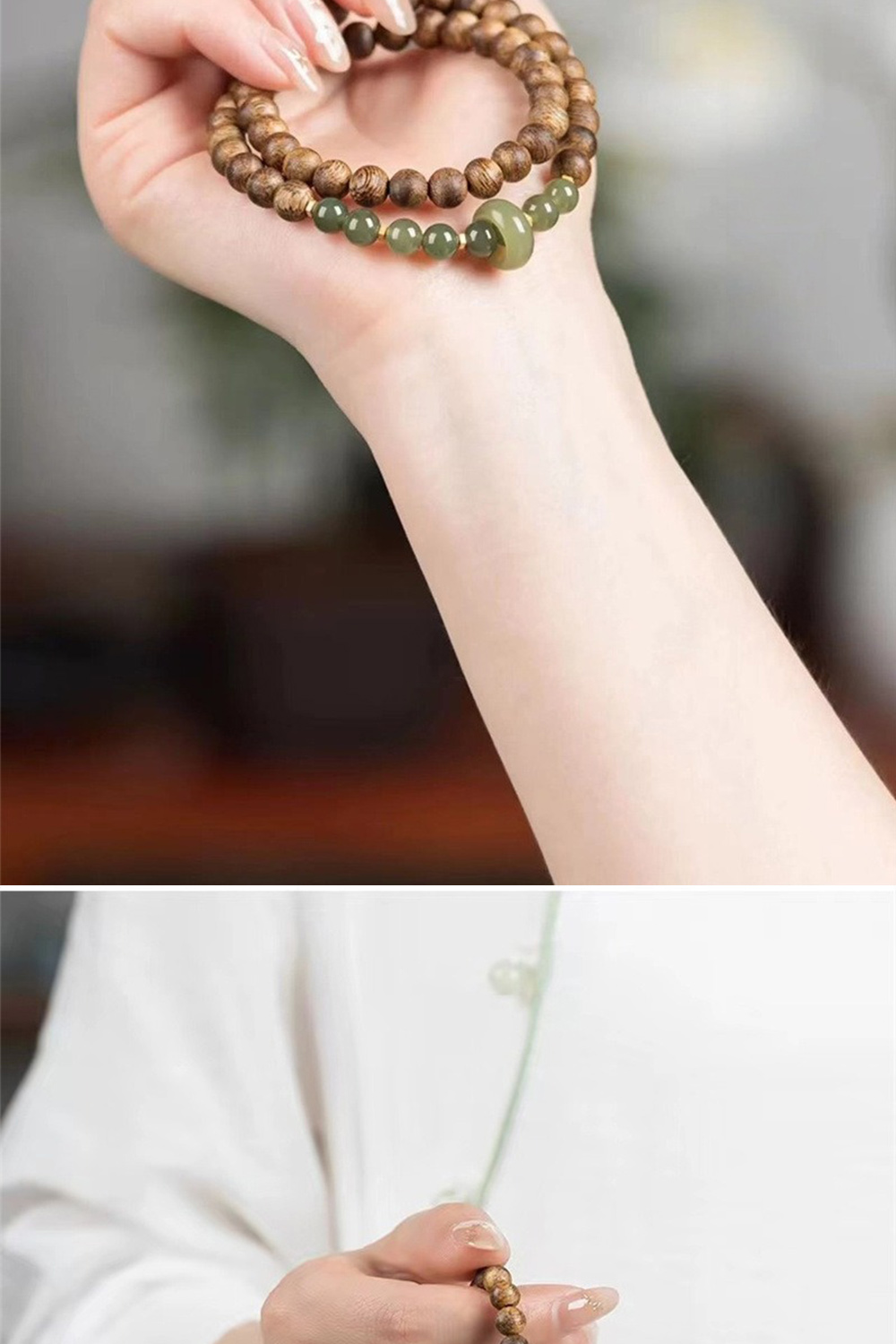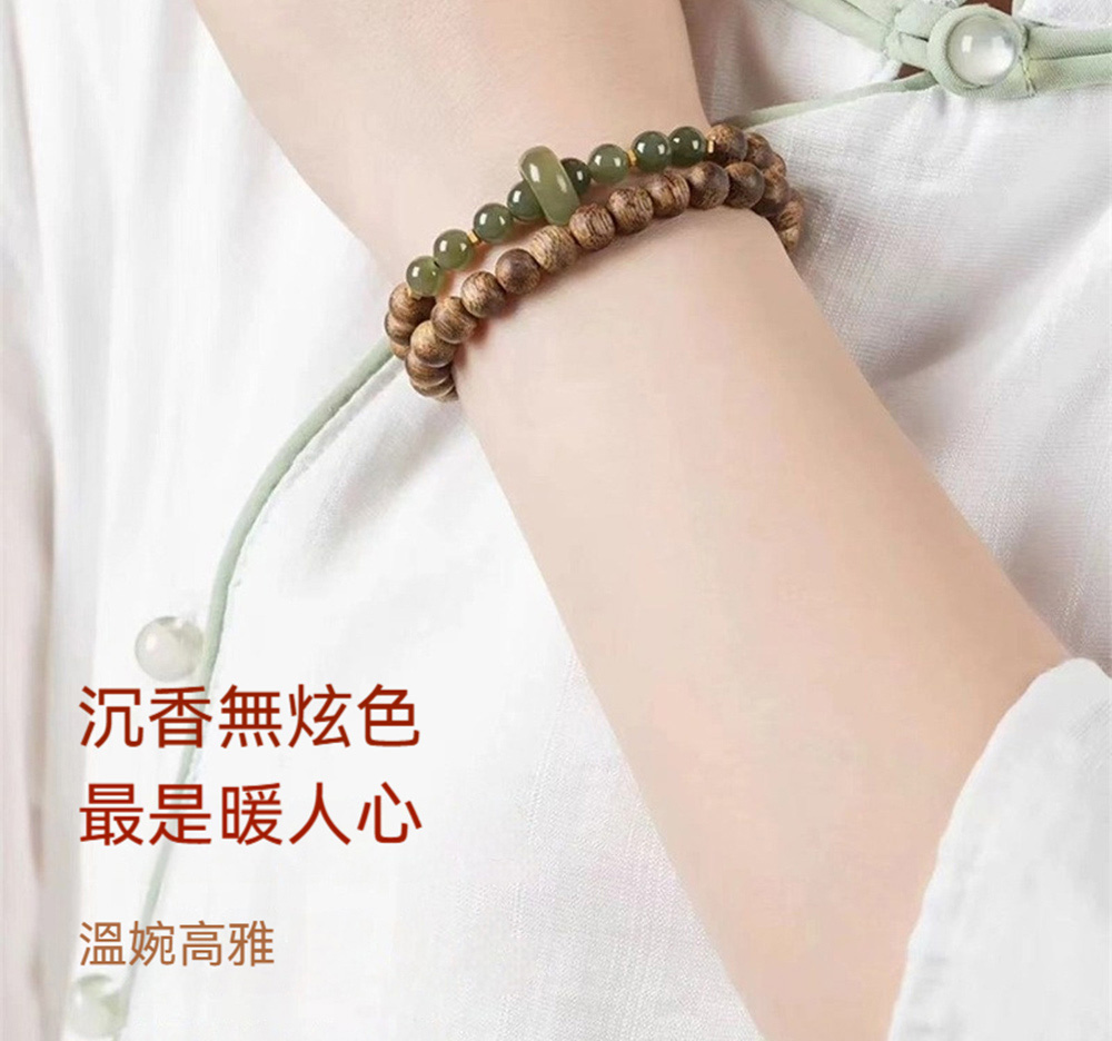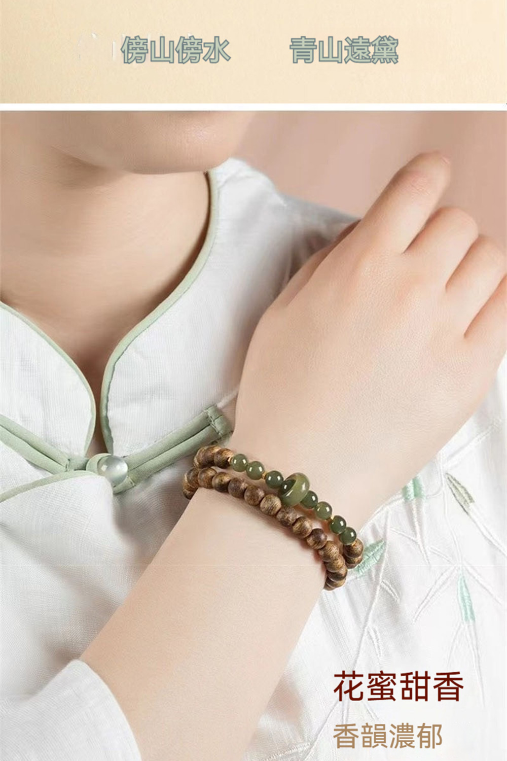 【MoonDy】飾品 手串 手鍊 沉香手串 和田玉 串珠手鍊 雙圈手串 文玩 佛珠手鍊 手珠佛珠 避