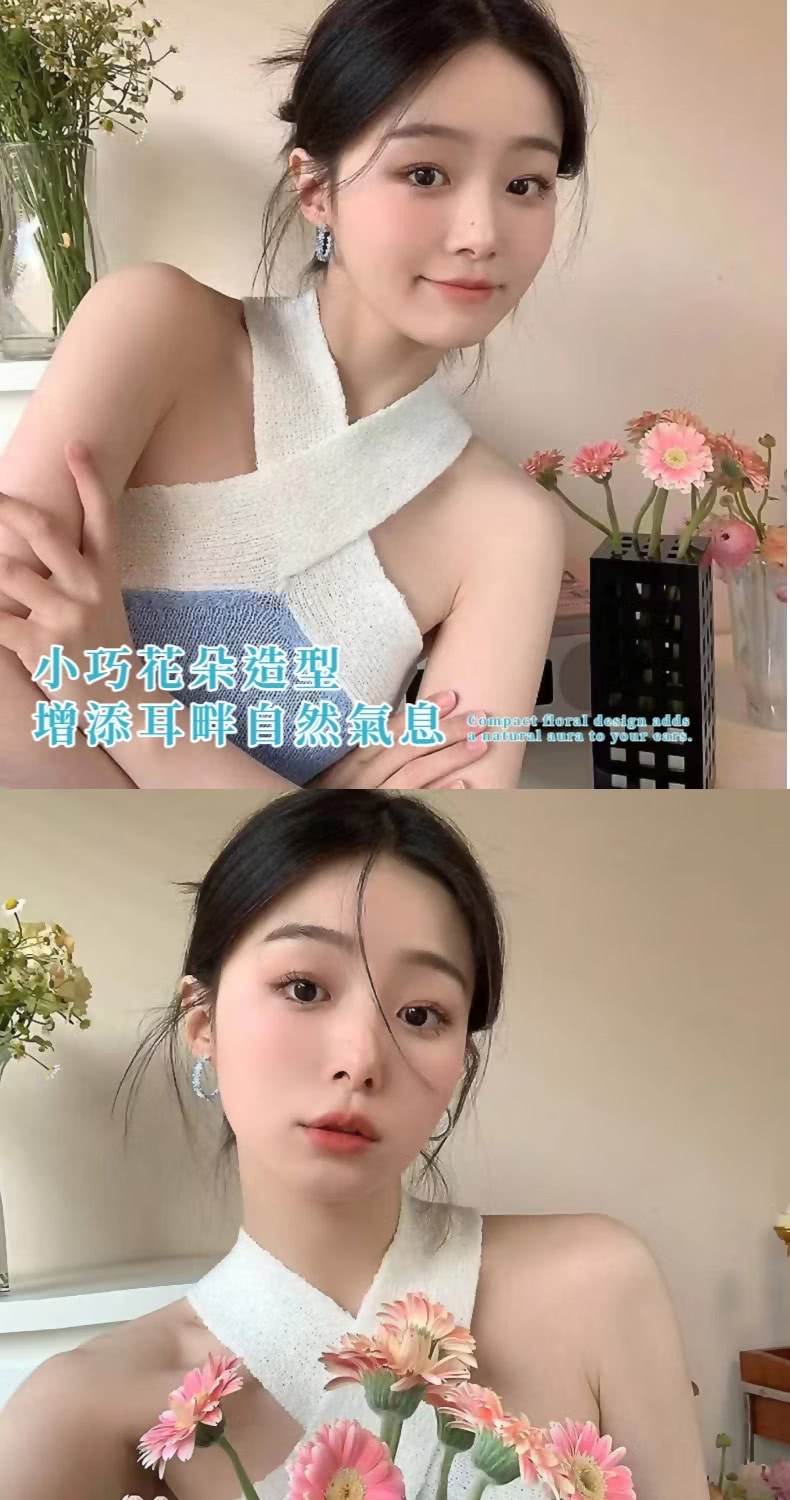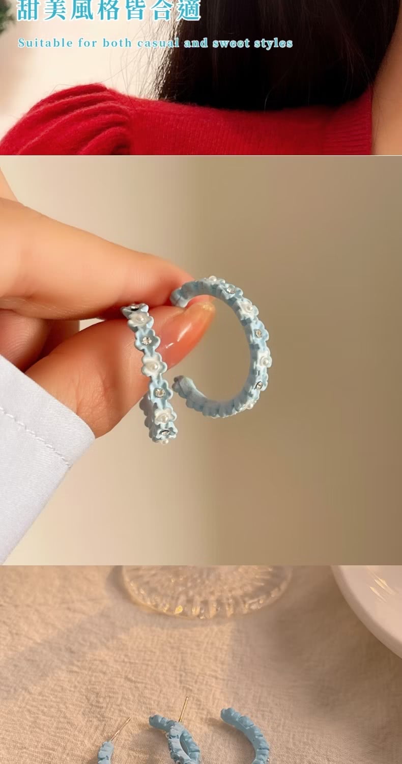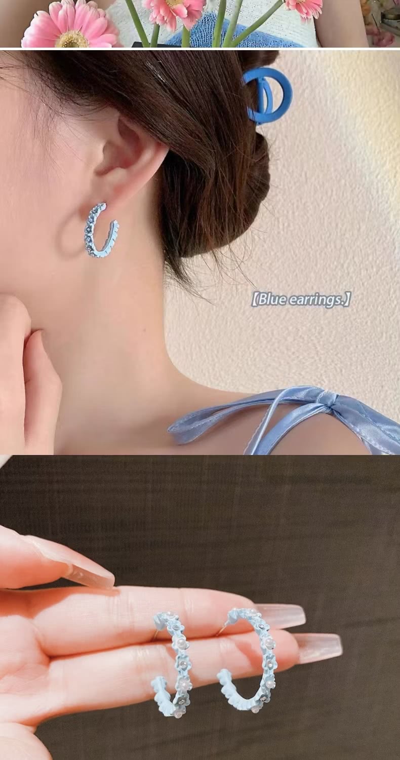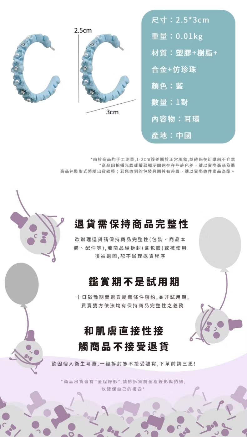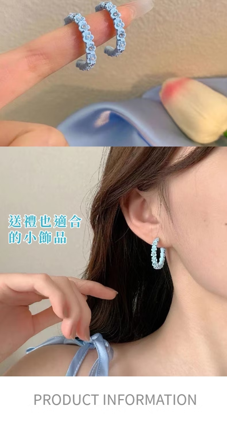 【青春明媚】藍色雛菊花朵耳環1對(耳墜 耳扣 飾品 耳飾 耳釘 耳針 耳環 首飾 情人節 送禮物)