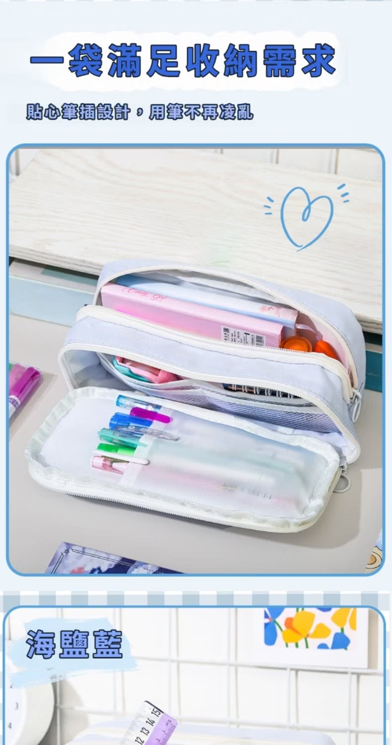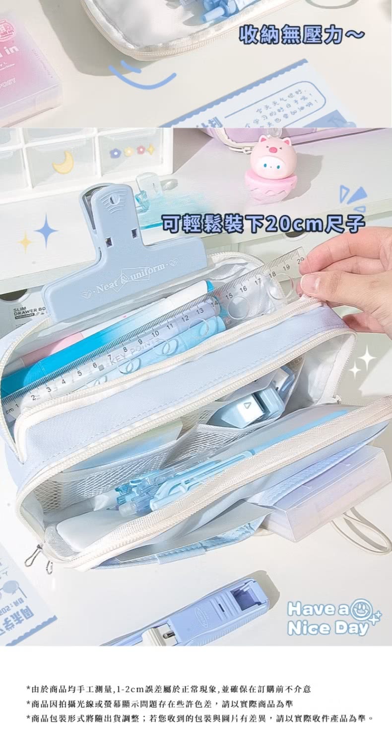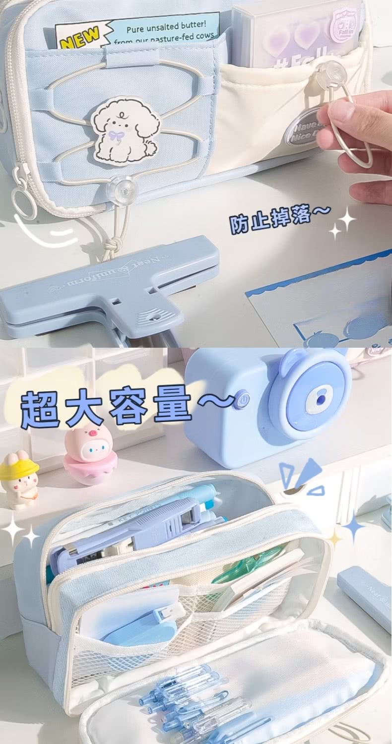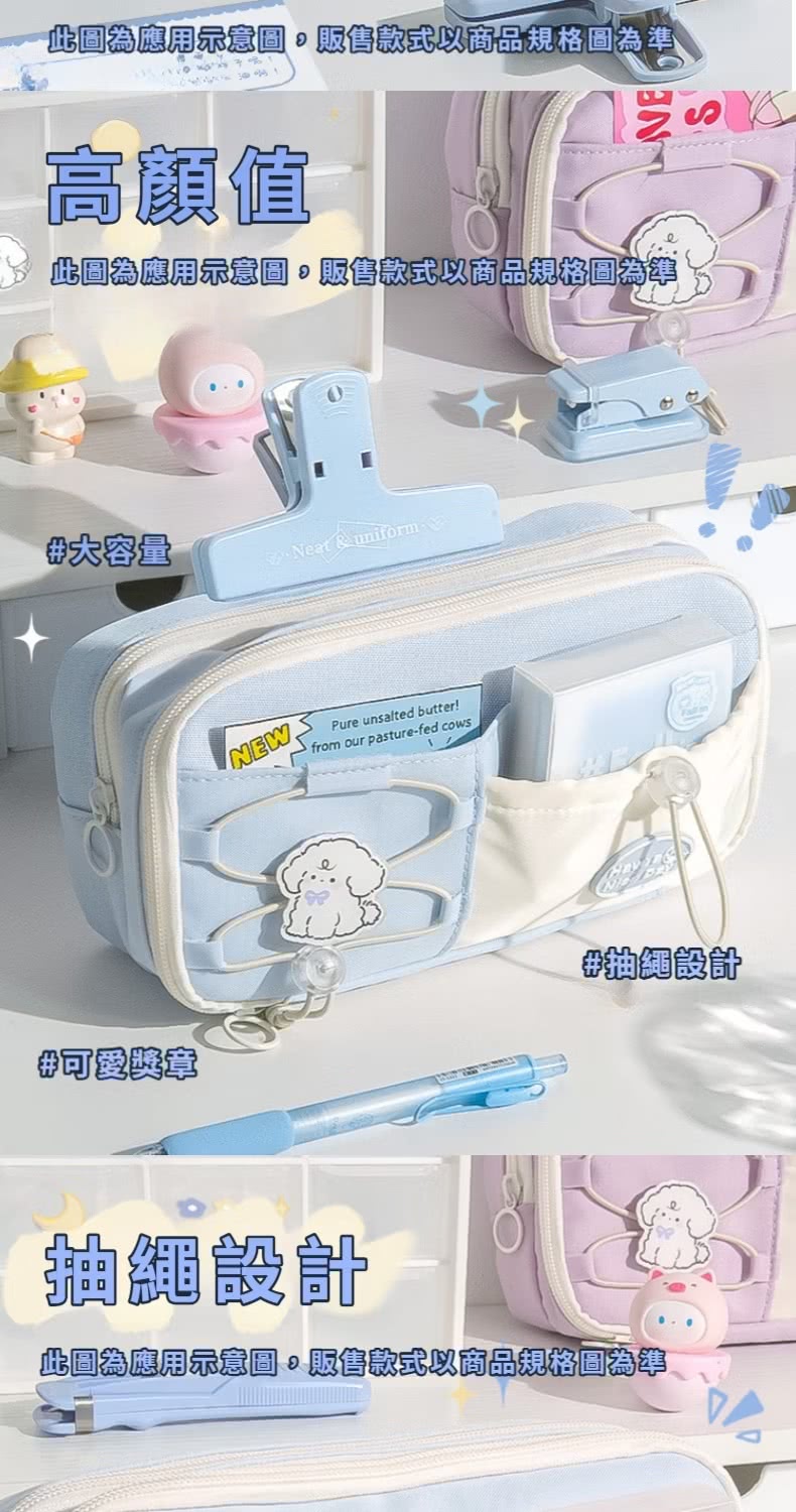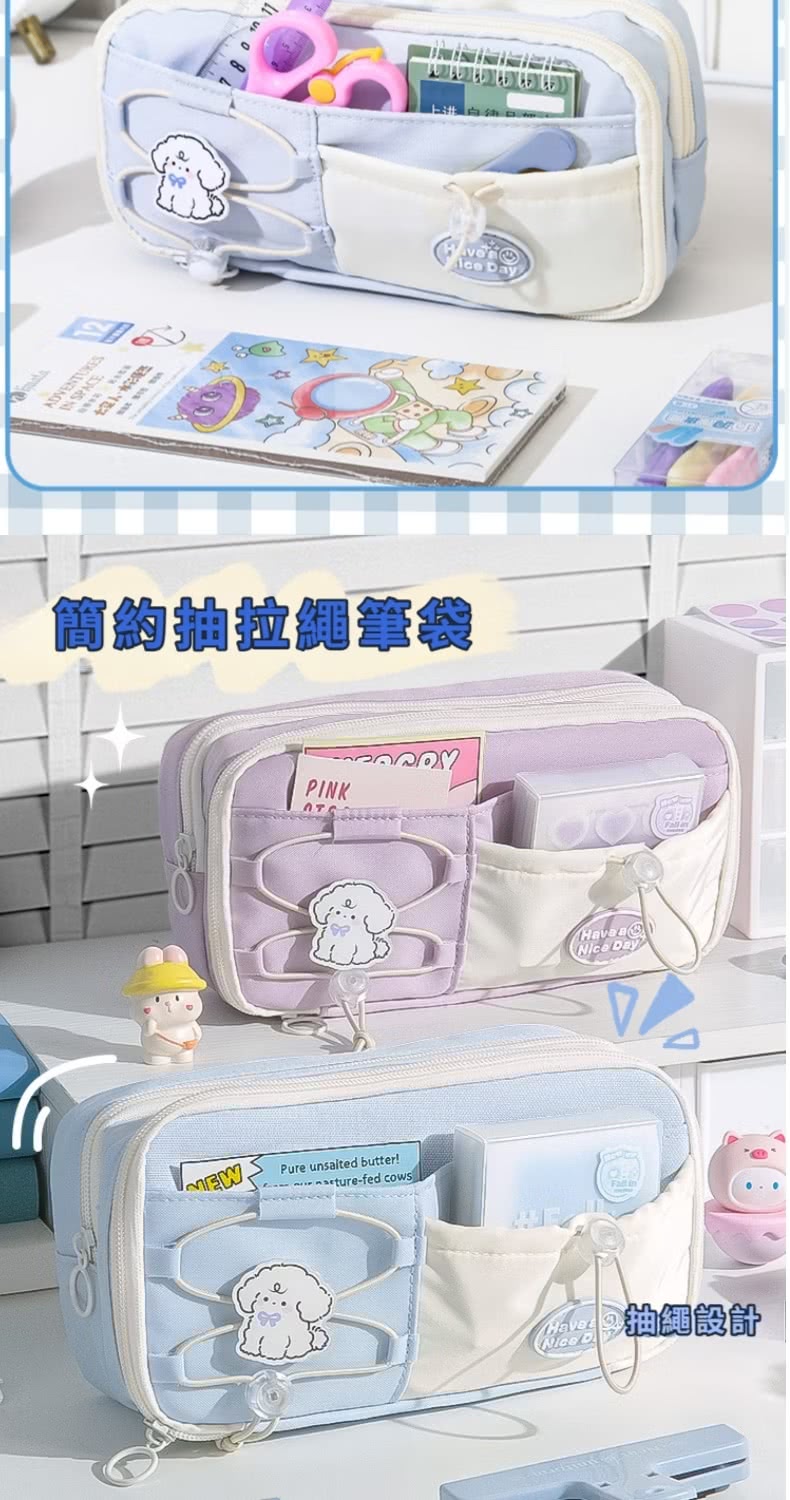 【小選物】日系奶油狗撞色大開口多層筆袋(抽繩 收納包 文具袋 鉛筆盒 大容量 拉鍊 學生 生日禮物)