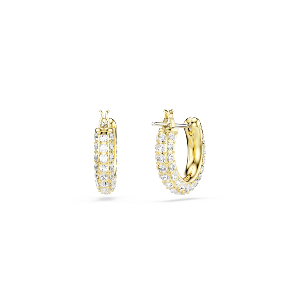 這款穿式小圈耳環散發透明色密鑲的光芒,是您的收藏中不可或缺的閃耀單品。簡約造型採用鍍金色調鍍層精心打造,可單獨佩戴,也可搭配其他耳環打造奢華組合。