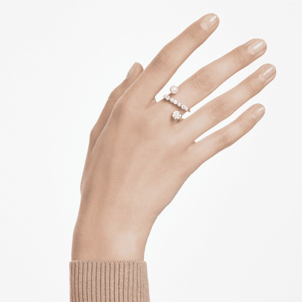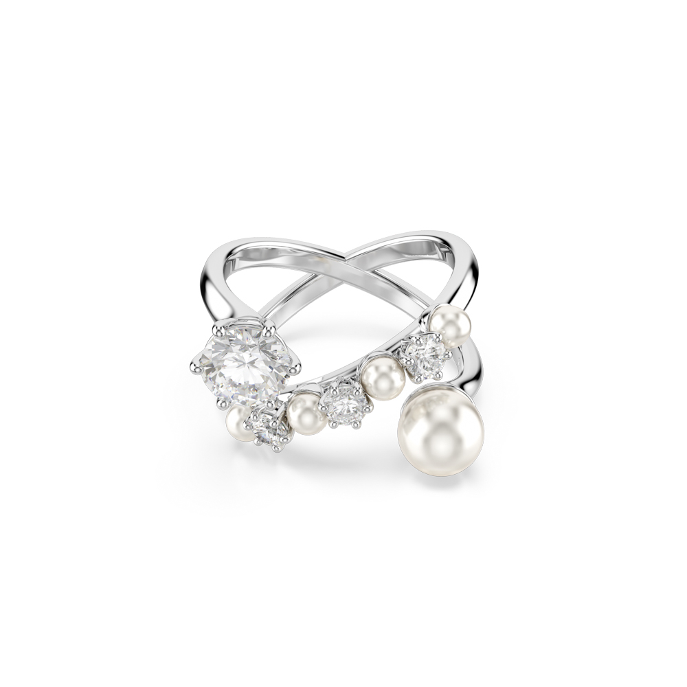 這款 Swarovski Matrix 戒指在現代與經典之間取得完美平衡,充滿優雅氣息。鍍銠戒環上斜向點綴著各式各樣的 Swarovski 鋯石和 Swarovski 水晶珍珠,其中最大的那顆,在令人著迷的開口設計下,彷彿漂浮於戒環之上。近看令人賞心悅目,搭配同款手鏈或項鏈佩戴時,更是令人讚嘆。