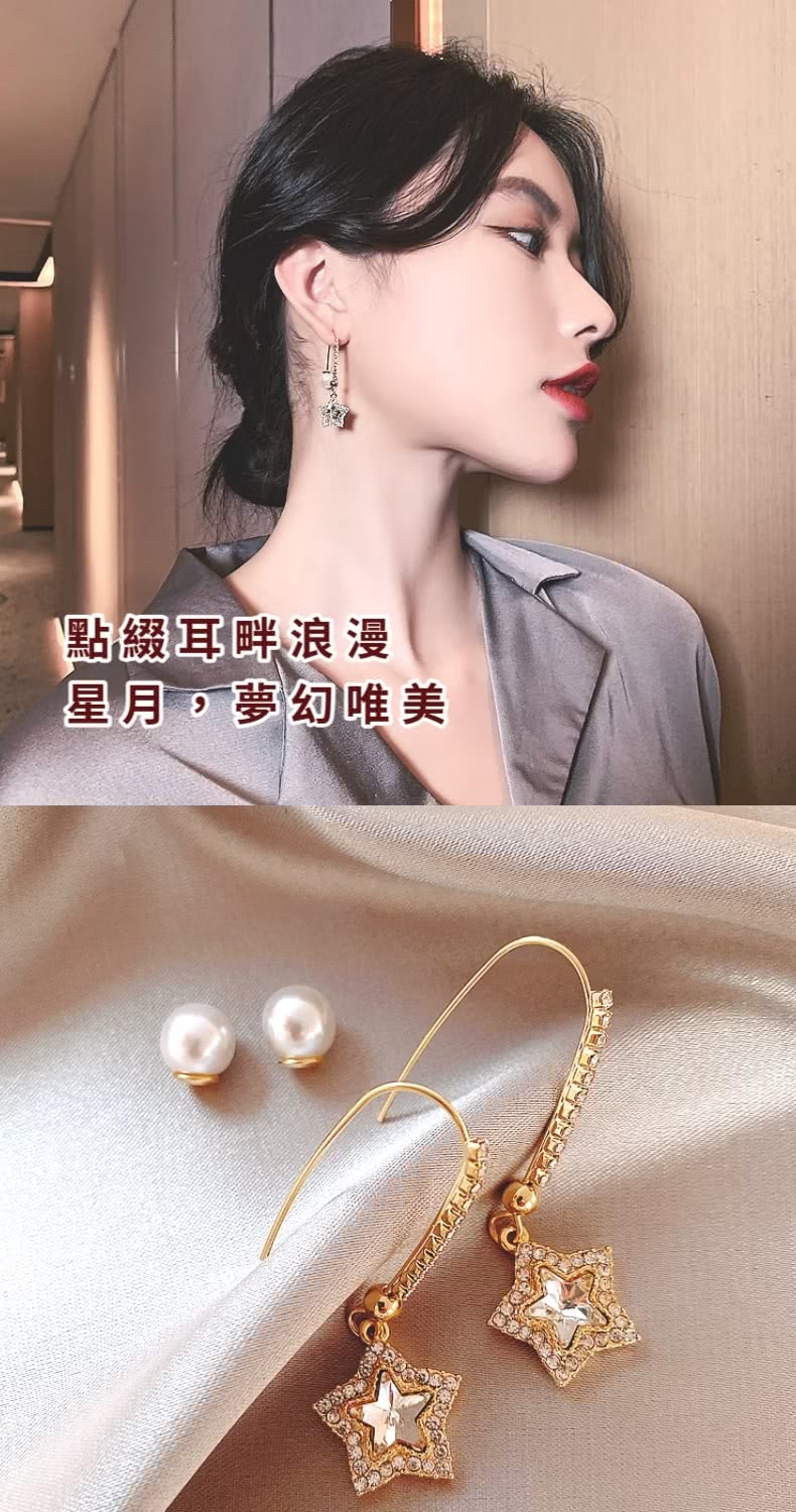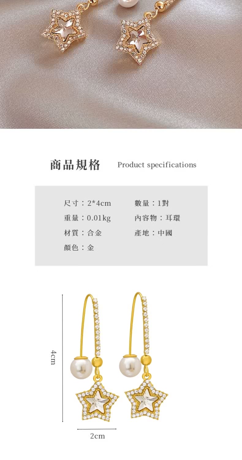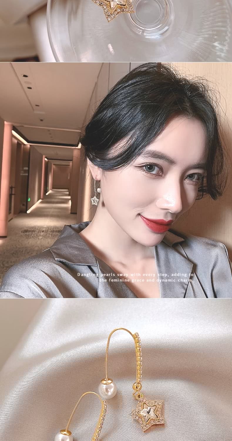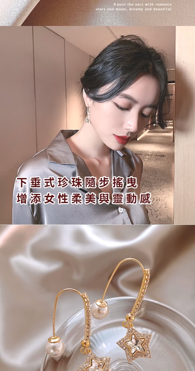 【閃耀星芒】星戀珍珠搖曳長耳勾(星星 垂墜 閃亮 五角星 耳釘 長款耳環 耳針 耳飾 聚會 約會)