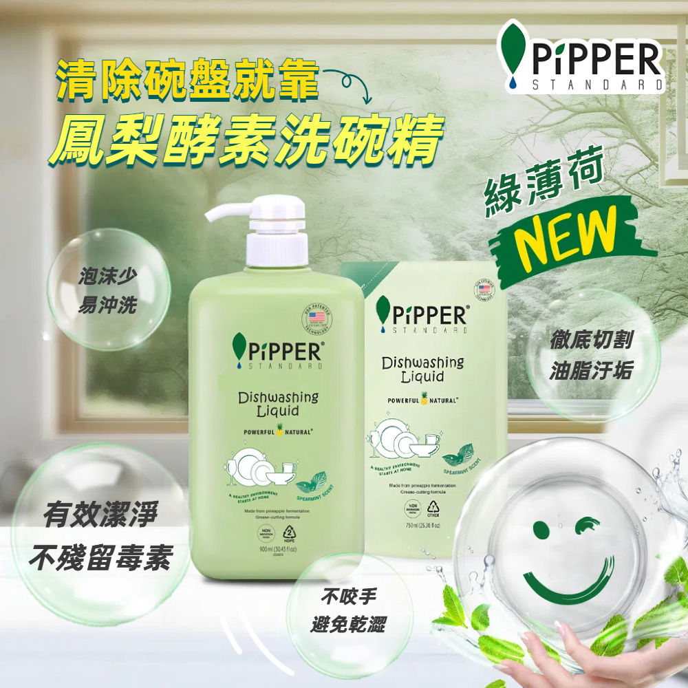 【PiPPER STANDARD】任選3入組 沛柏鳳梨酵素洗碗精柑橘900mlx3-柑橘/綠薄荷(洗碗洗蔬果/碗盤餐具洗潔精)