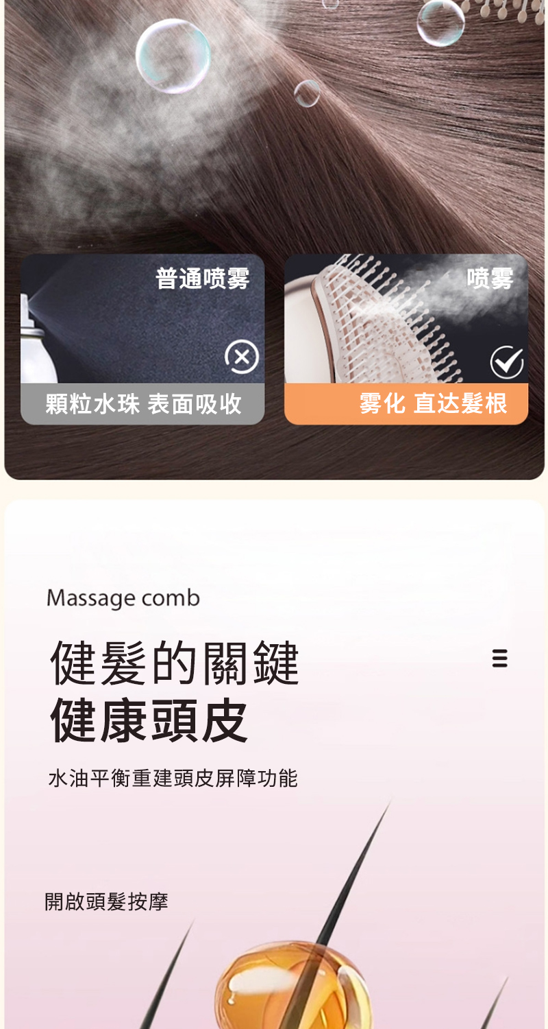 【SAMPA】電動護髮按摩梳 精油霧化護髮梳 頭皮按摩梳 震動按摩頭皮梳 美髮梳 滋養護髮(情人節禮物)