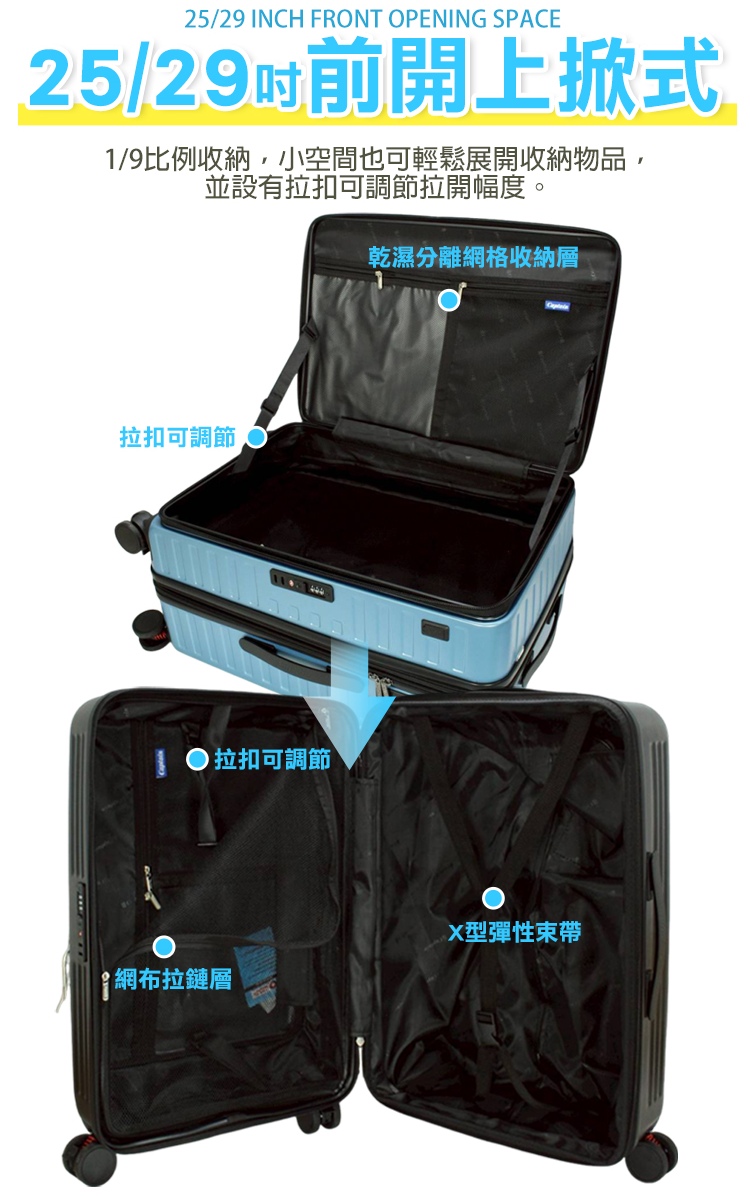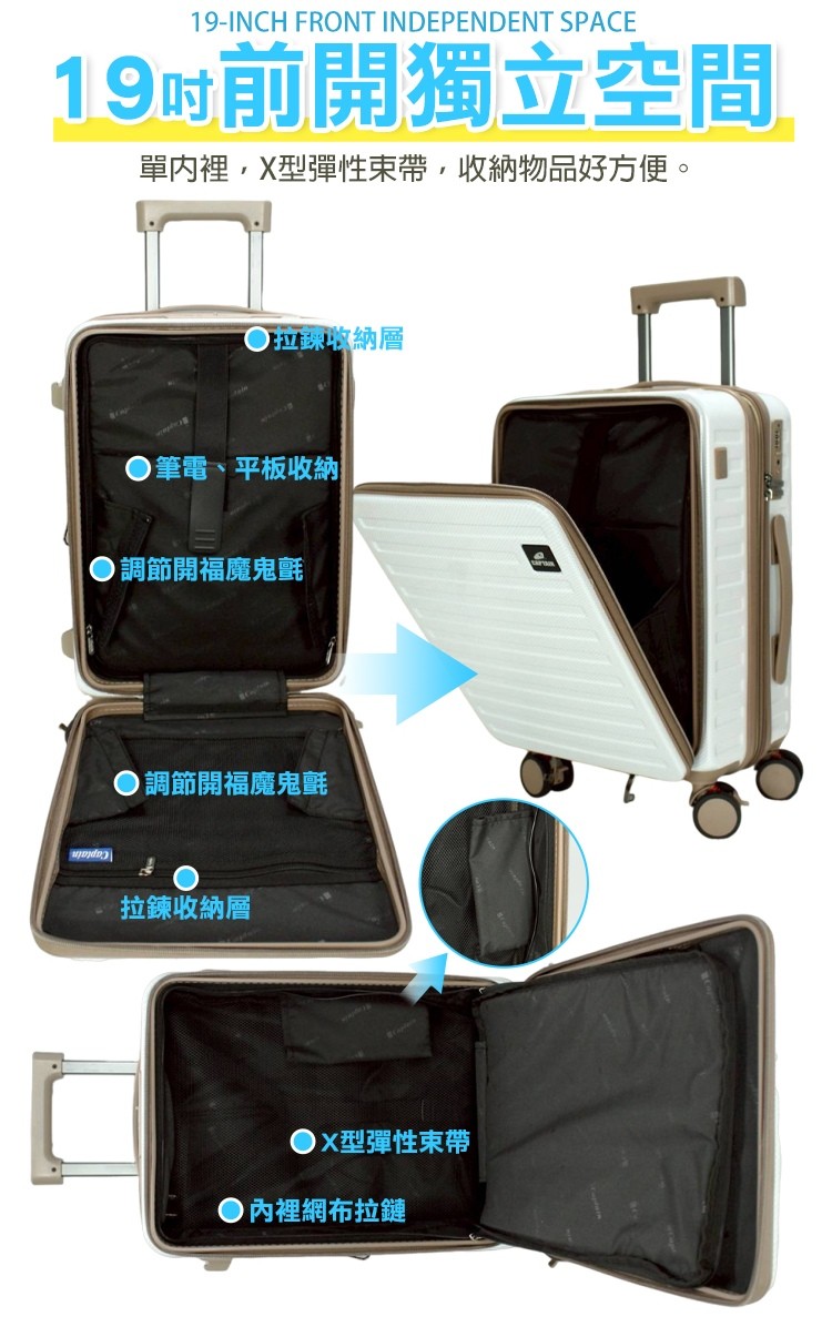 【DF travel】聖地牙哥雙海關鎖可USB充電有飲料架25吋前開式可加大行李箱旅行箱 - 多色可選