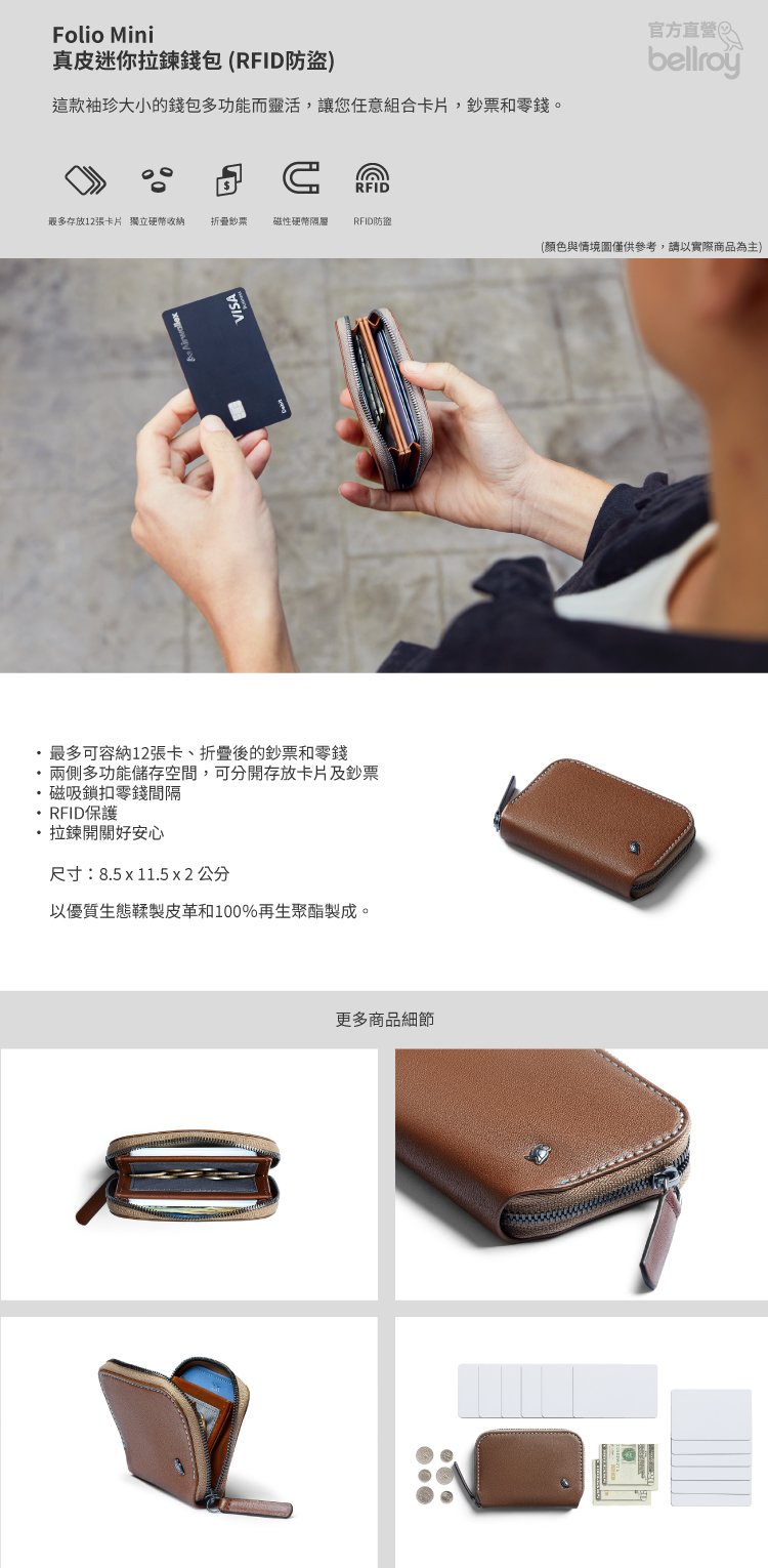 【Bellroy 官方直營】Folio Mini 真皮迷你拉鍊錢包 - RFID防盜(榛果棕)