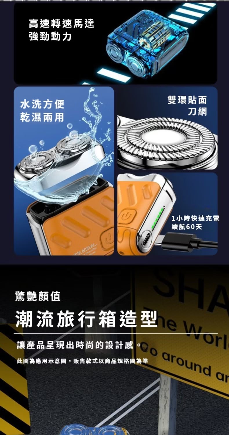 【全機水洗】磁吸電動剃鬚刀(雙刀頭 不夾鬚 刮鬍刀 刮毛刀 旅行 出差 商務 修毛器 電鬍刀 電推 男)
