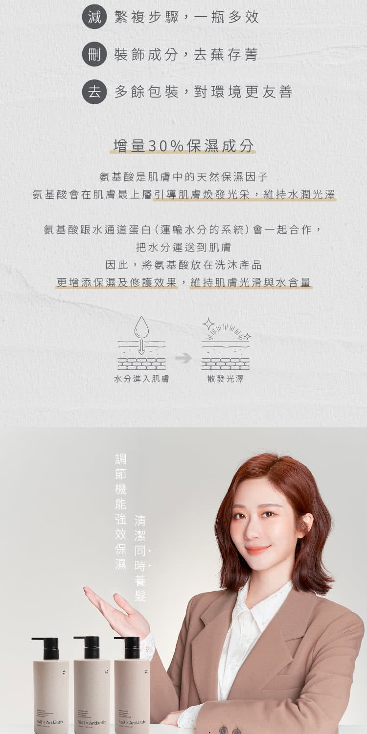 保濕:氨基酸、玻尿酸、膠原蛋白,賦活頭皮