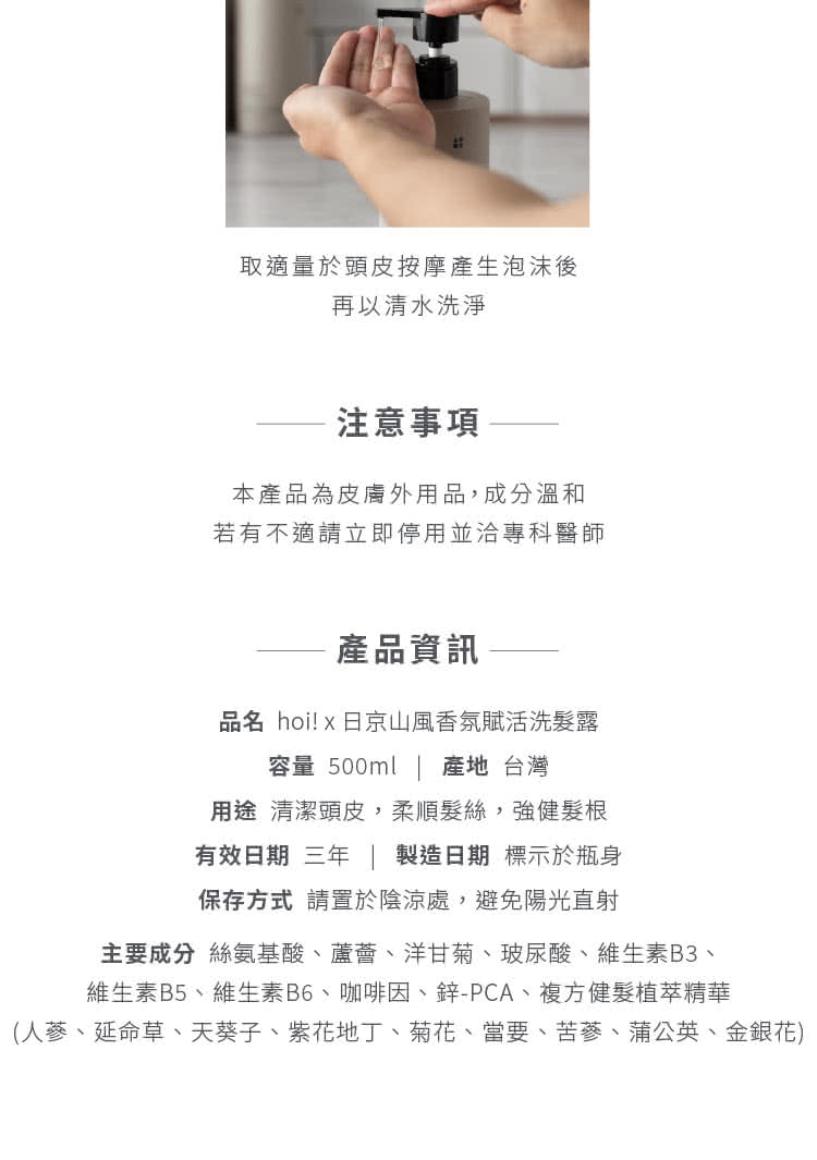 品名: hoi x 日京山風-香氛賦活洗髮露500ml-意氣之風