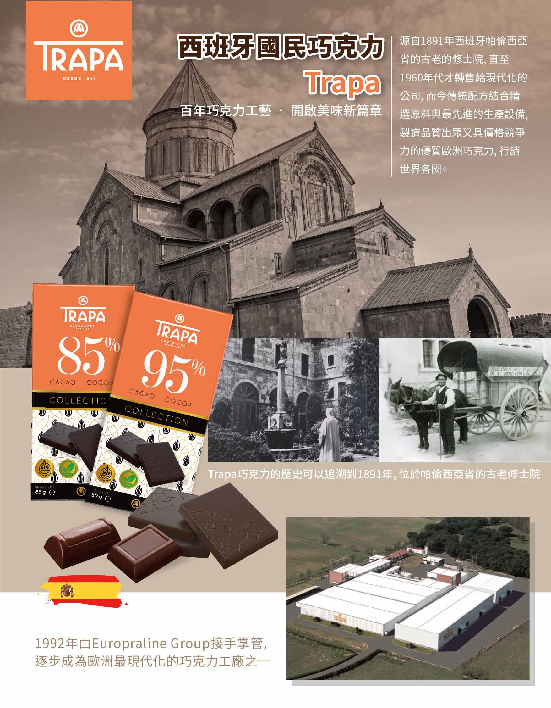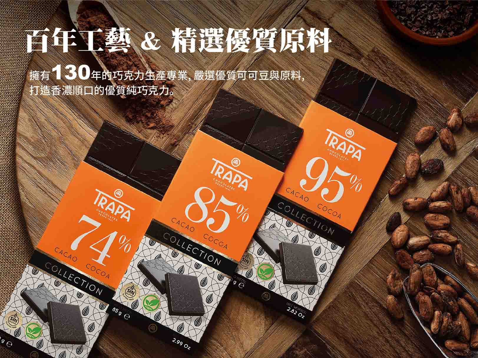 即期品【西班牙 Trapa】精選85%黑巧克力片85gX2片