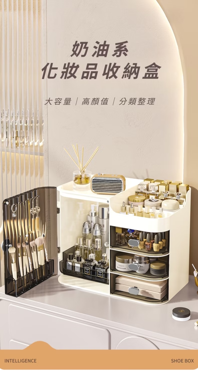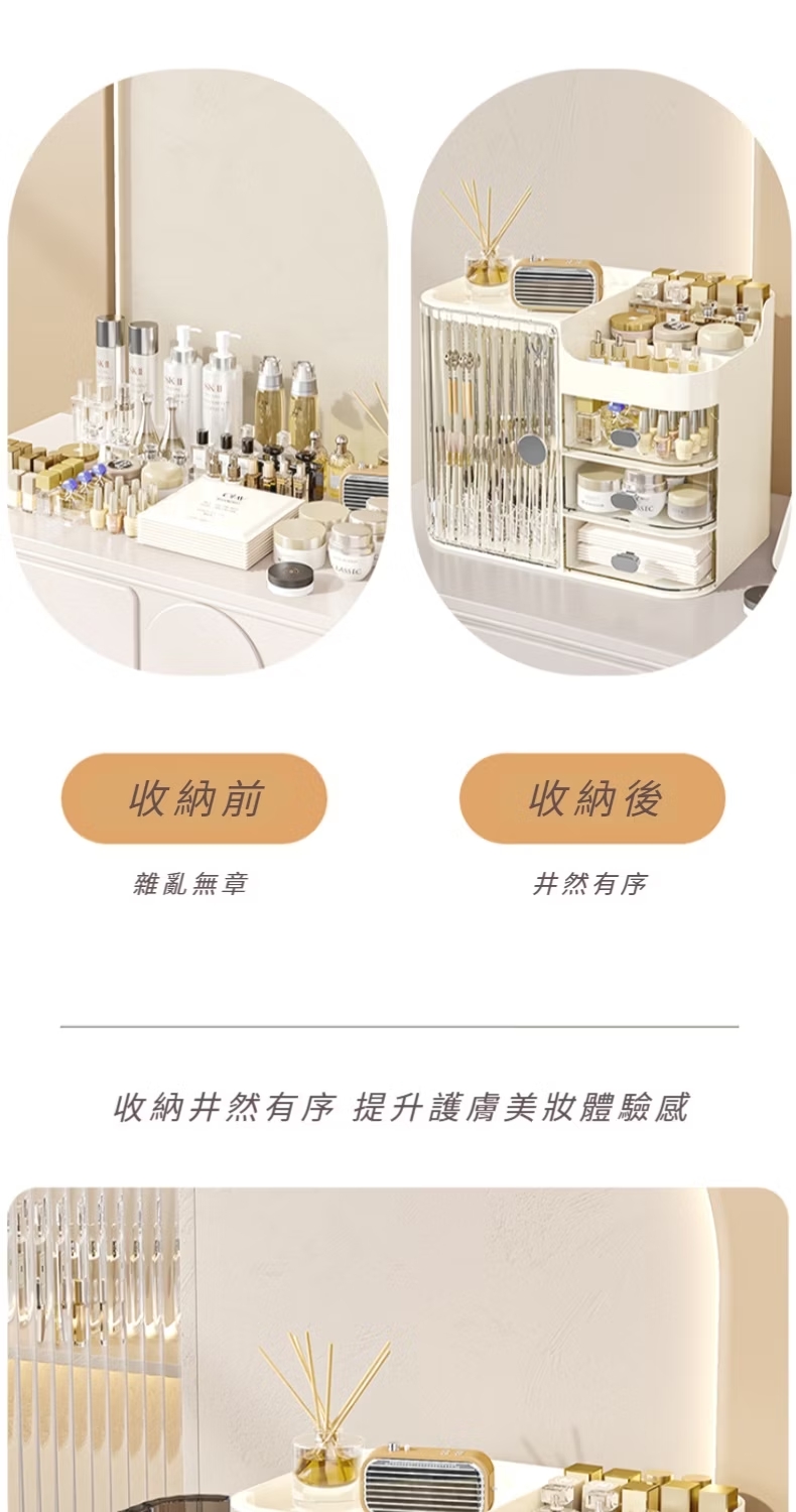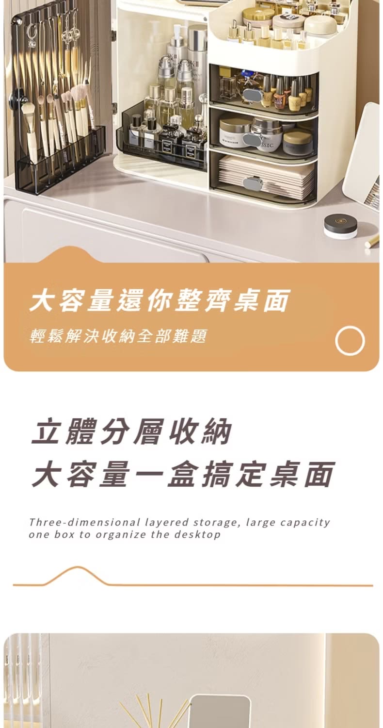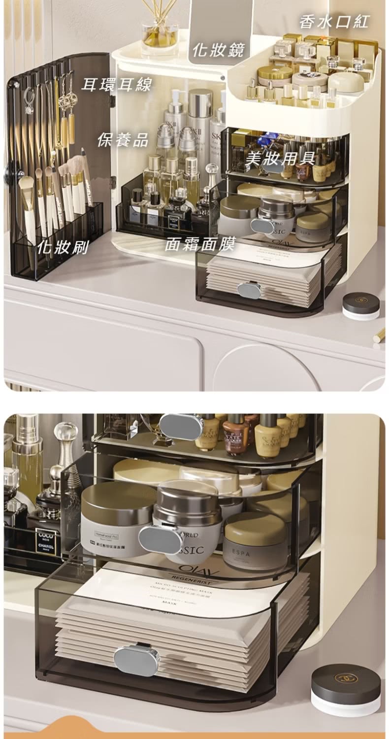 【空間大師】北歐雅緻大容量化妝品收納盒(保養品 收納架 飾品 刷具 置物 整理 桌上抽屜 桌面 生日禮物)