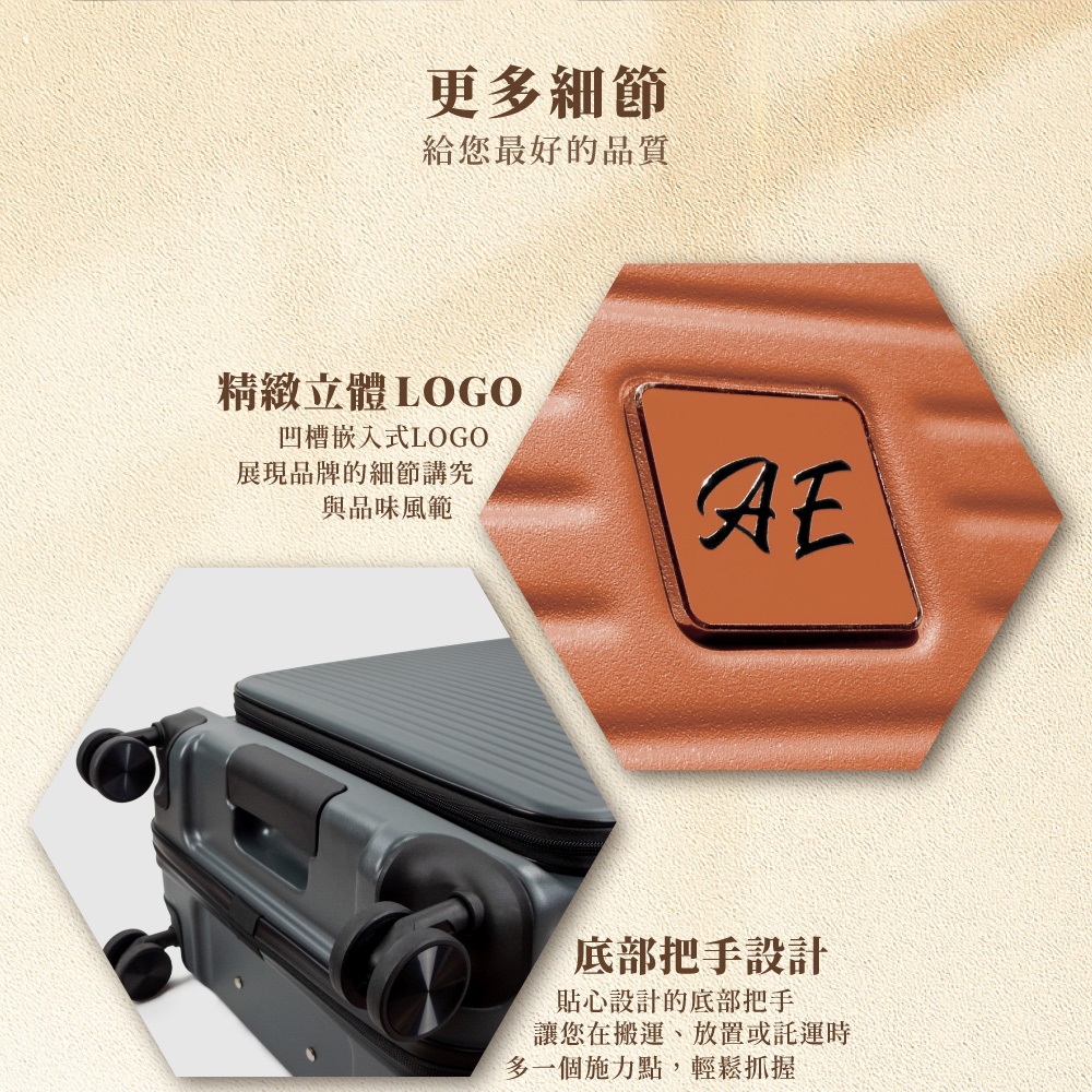 ● 箱體底部手把設計,便於多角度提取行李箱(20吋登機箱無此設計)