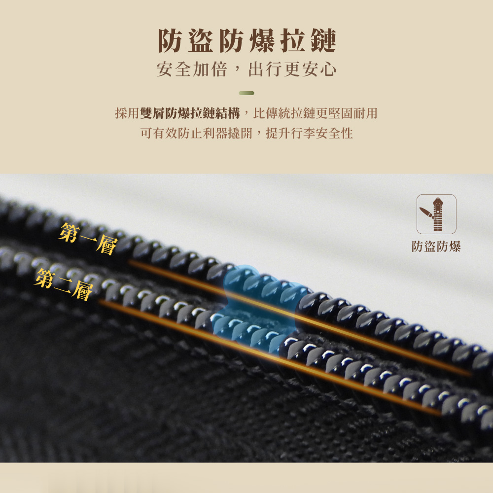 CF62 拉鏈:高品質雙層防爆/防盜拉鏈,穩固耐用,有效避免竊盜和栽贓