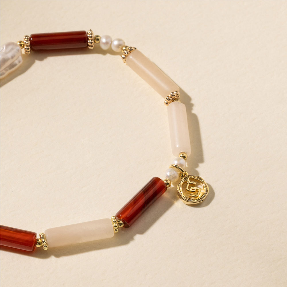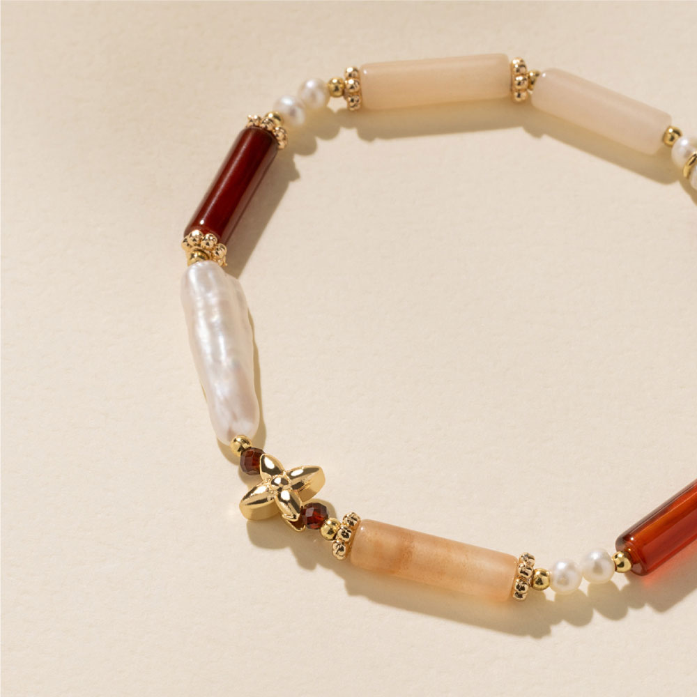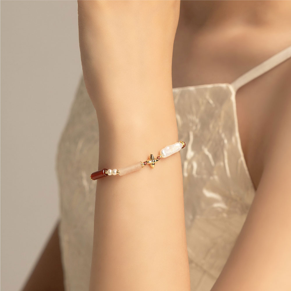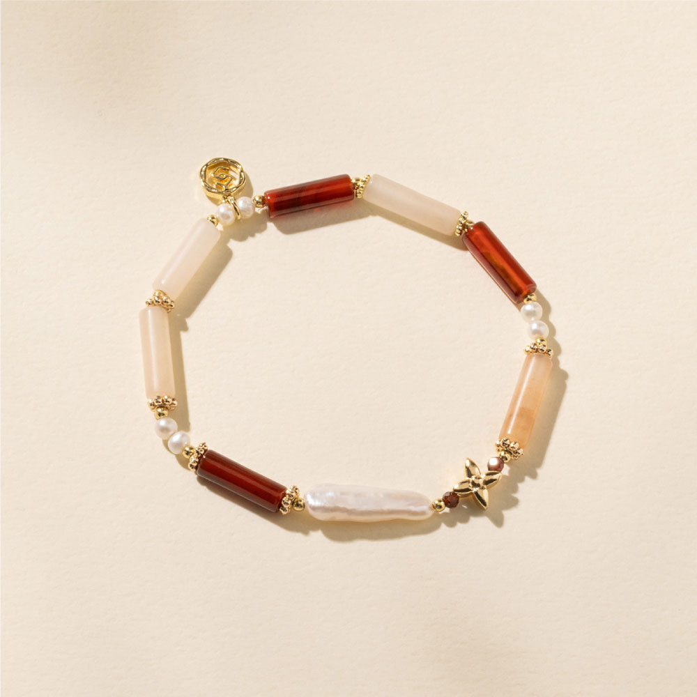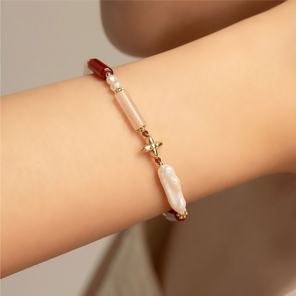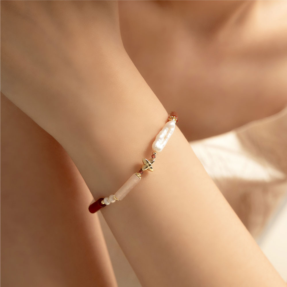 【SPANCONNY 飾品控】女爵 l 粉東陵 紅瑪瑙 石榴石 珍珠 l 天然水晶手鍊(不銹鋼材質 耐磨抗氧化)