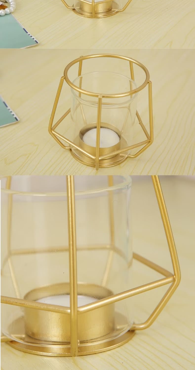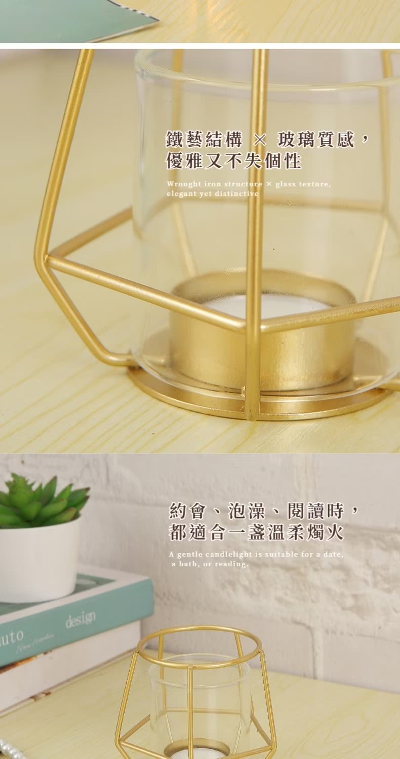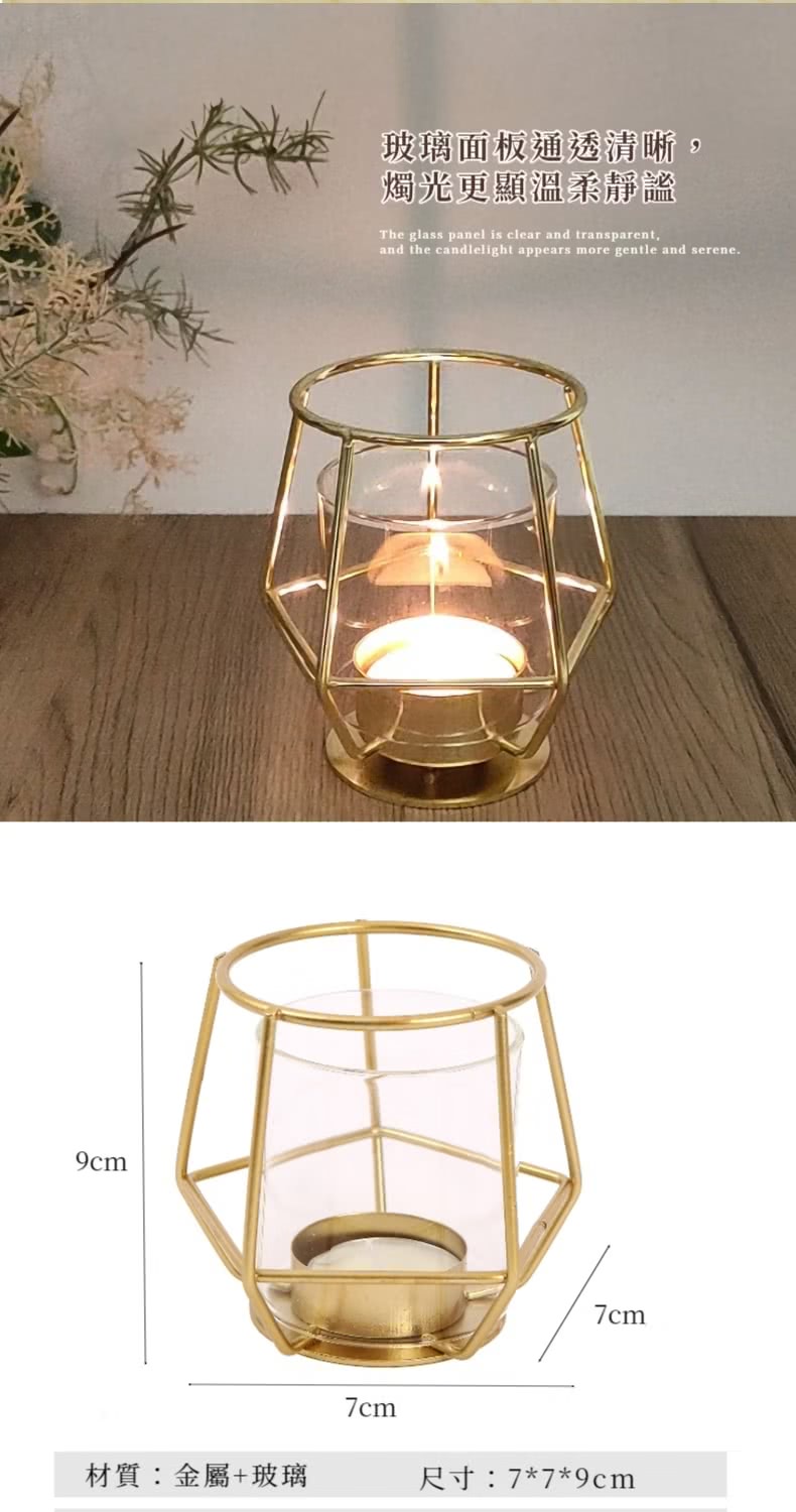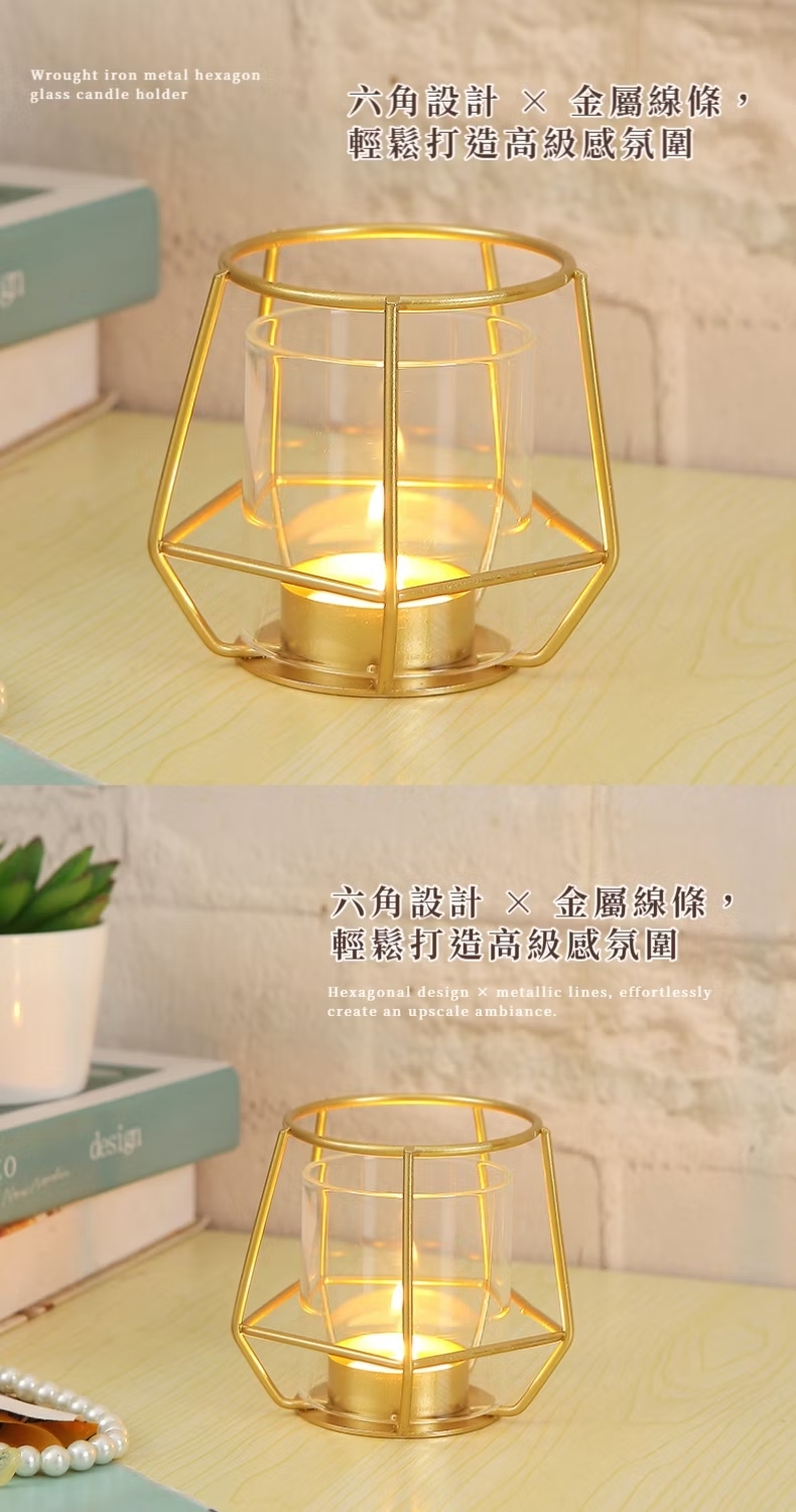 【浪漫風燭】鐵藝金屬六角玻璃燭台(多肉植物 花架 小盆栽 花器 香薰蠟燭 底座 桌面擺飾 居家)