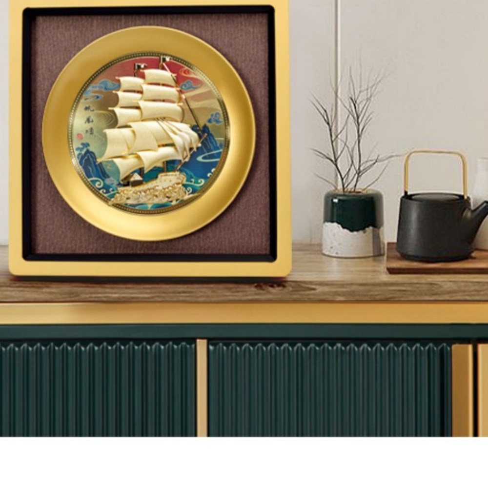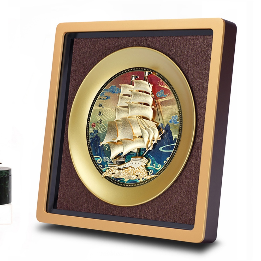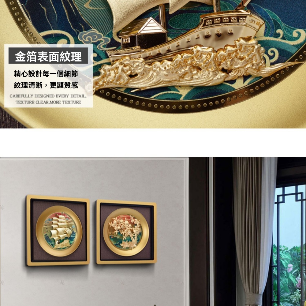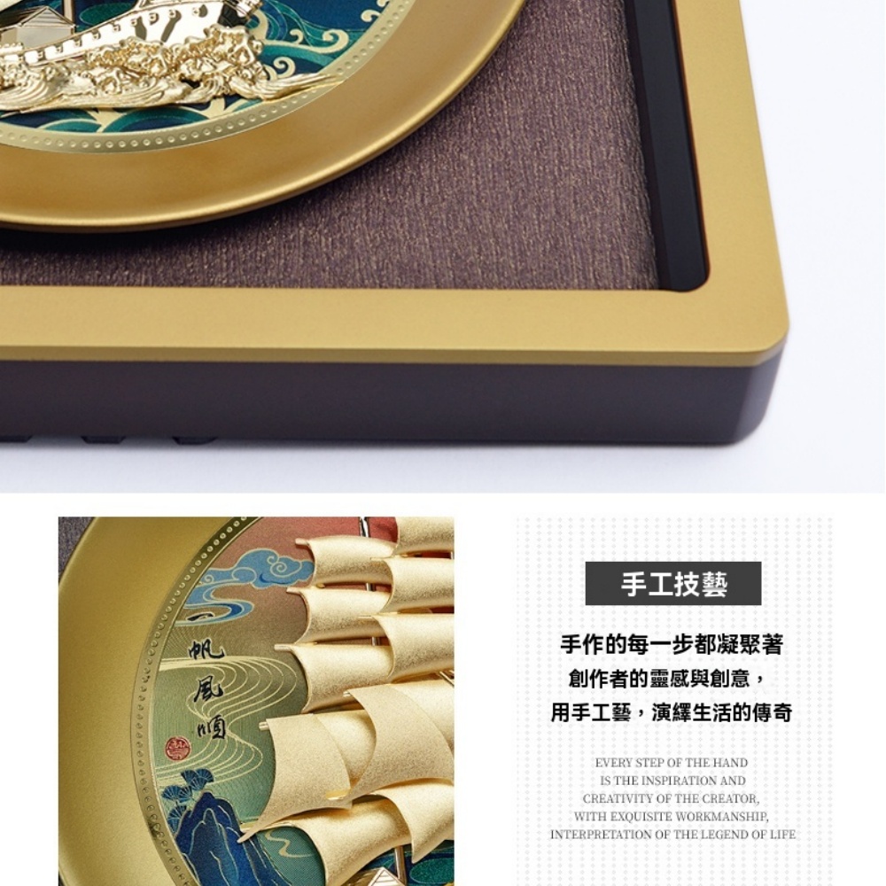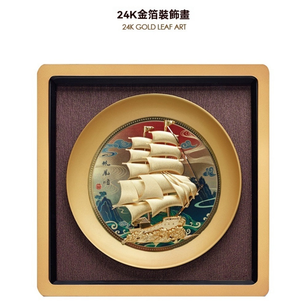 【超微米】壹帆風順帆船擺件 招財金箔畫 喬遷新居公司開業禮物 桌面擺件(一路順風 桌面擺件)