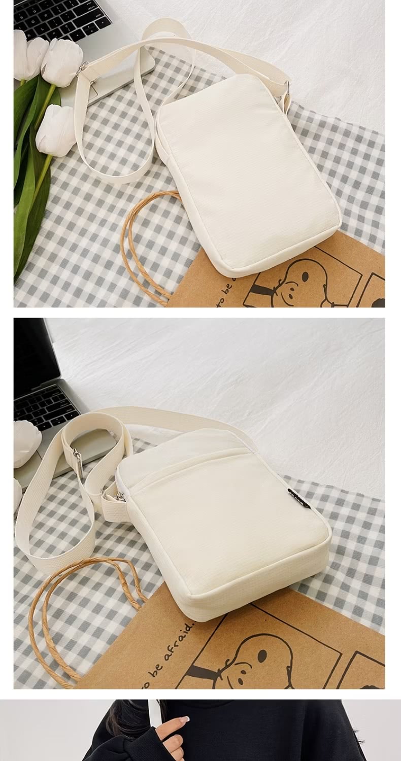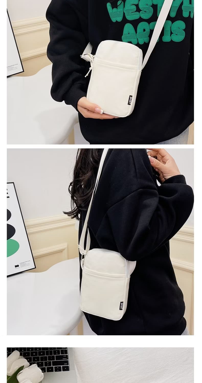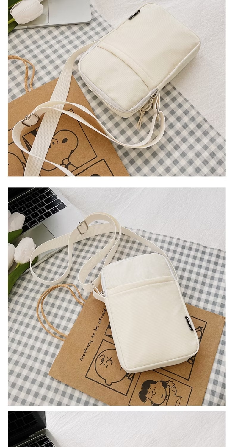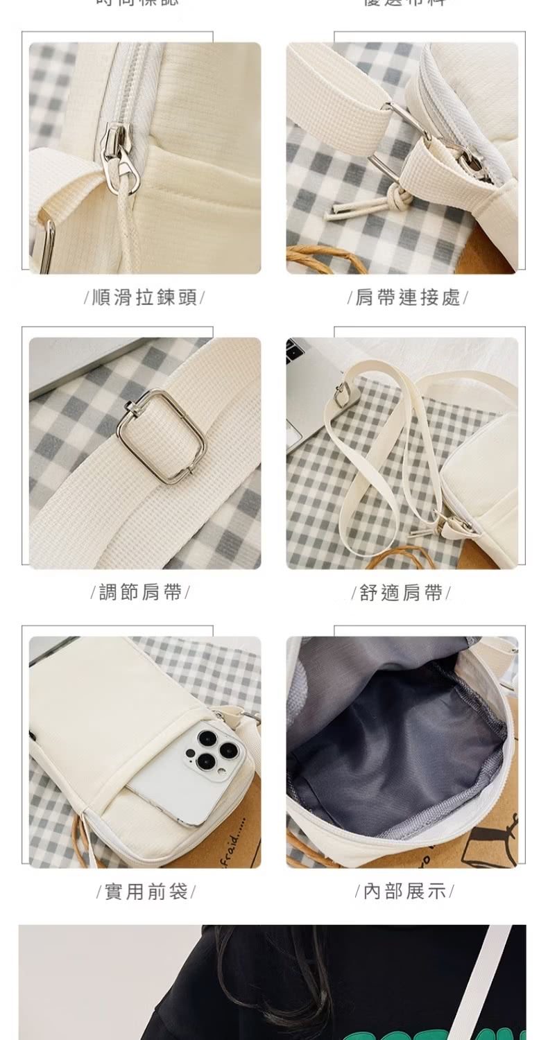 【萬萬裝】雙11 日系米白帆布掛脖單肩小包(大手機可 大容量 隨身外出 斜跨包 零錢包 媽媽包)