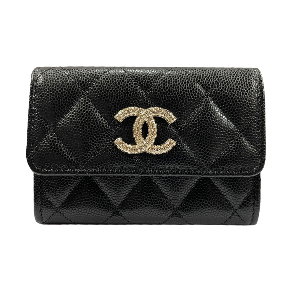 【CHANEL 香奈兒】AP4719經典雙C立體LOGO扣式零錢包/短夾(黑色)