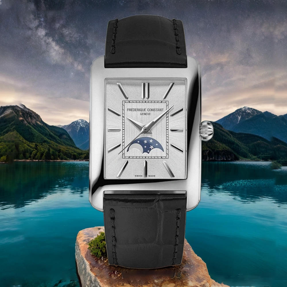 精緻細膩的錶殼配以簡約時標、經典大三針和月相顯示,復古優雅風格。