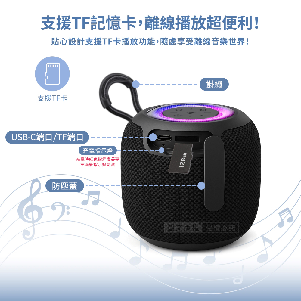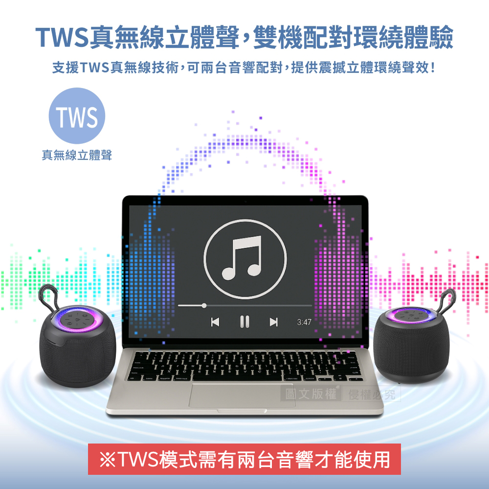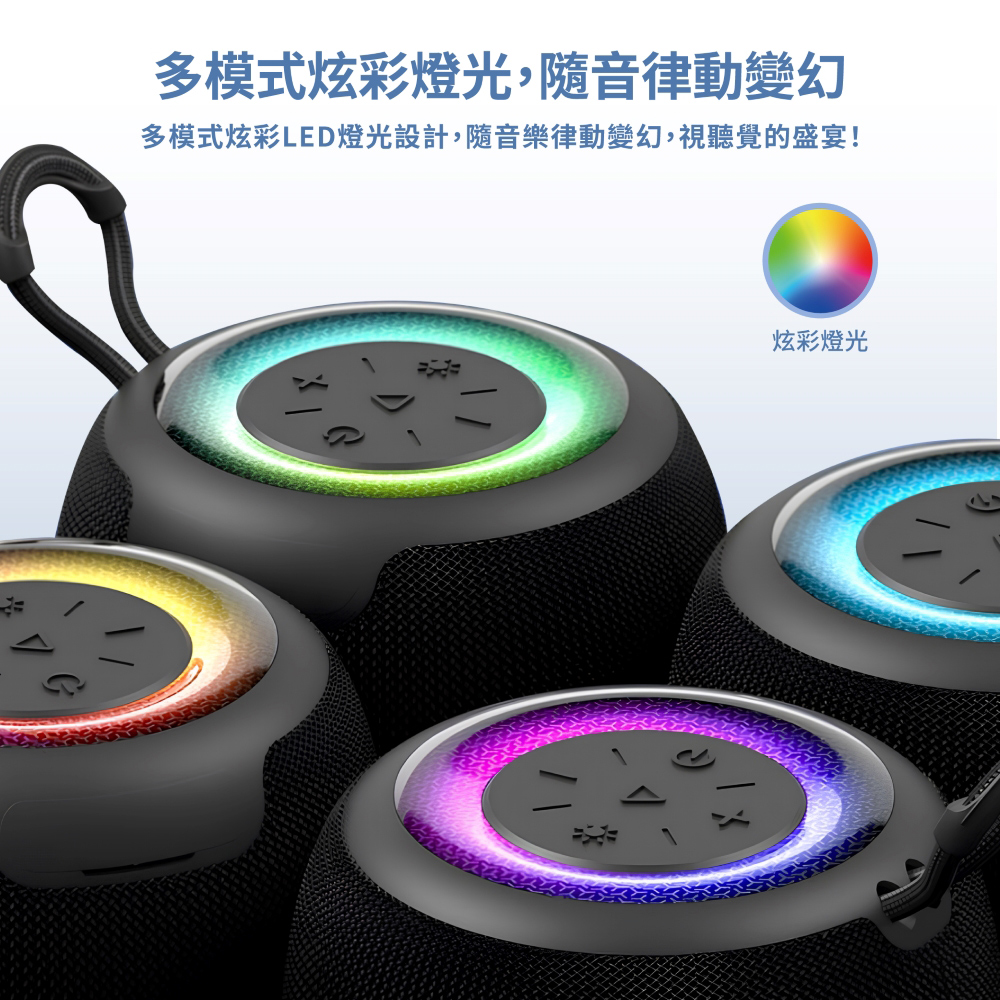 【Wildex】TWS真無線環繞立體聲 LED炫彩燈光 迷你藍牙音響(自帶掛繩)