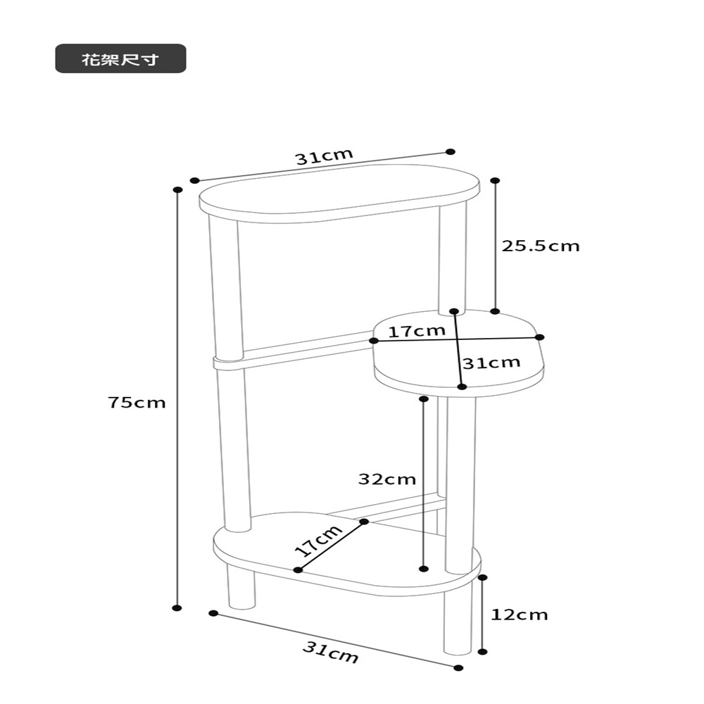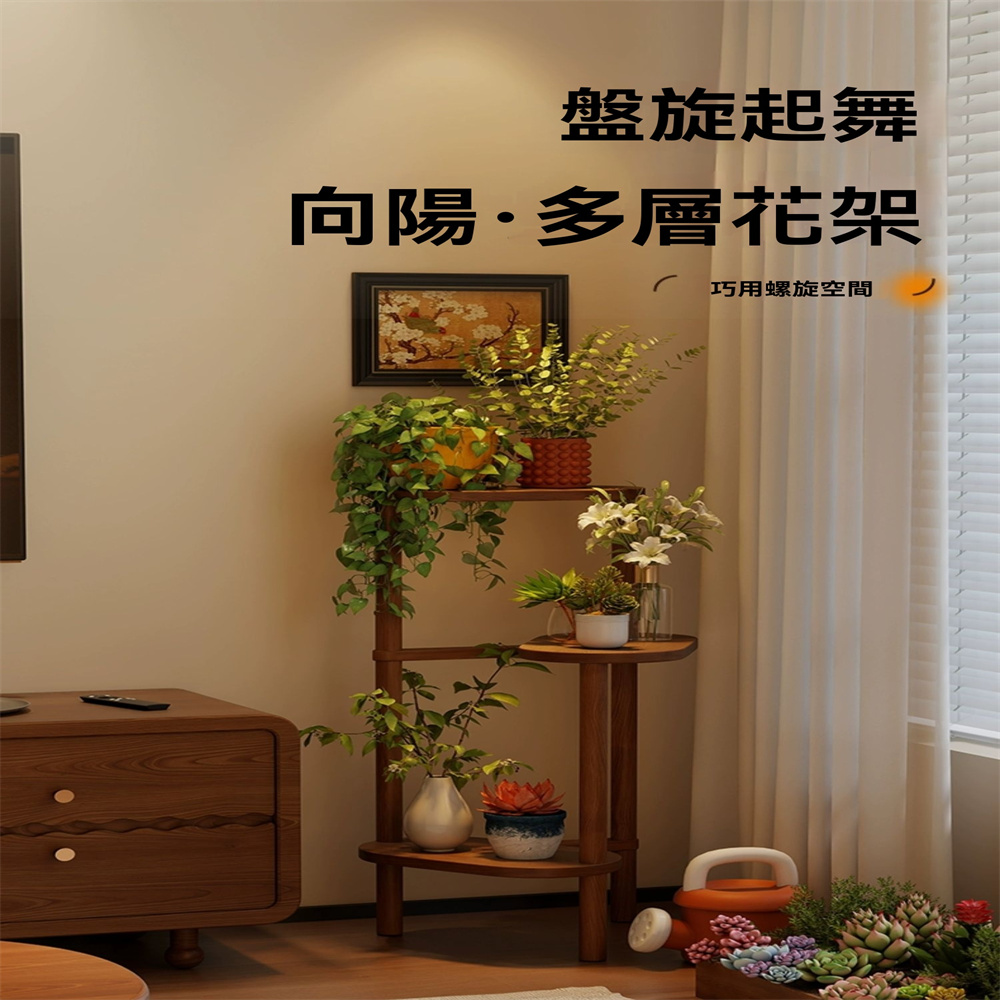 【超微米】中古風實木花架 客廳落地式置物架 陽台異形盆栽植物擺放架子(中古風實木花架 三層櫸木款)
