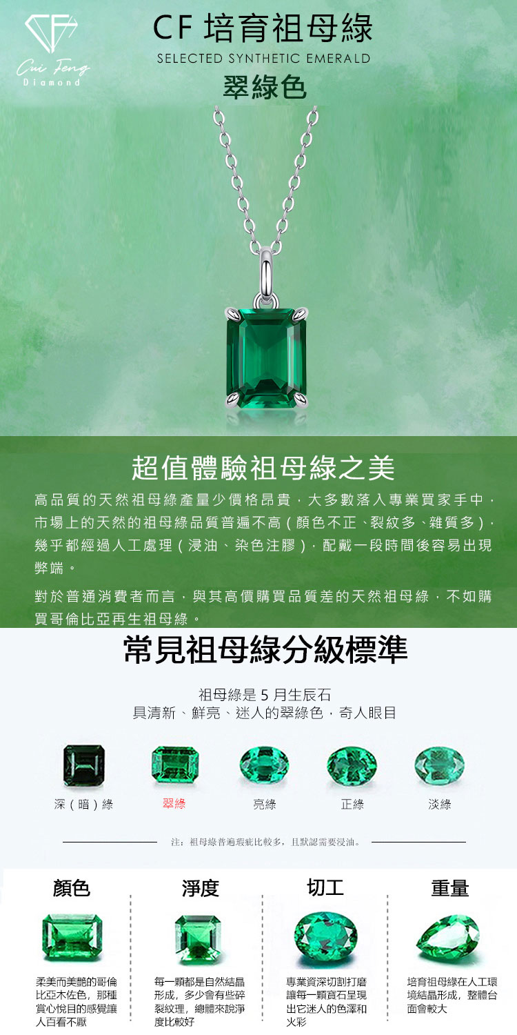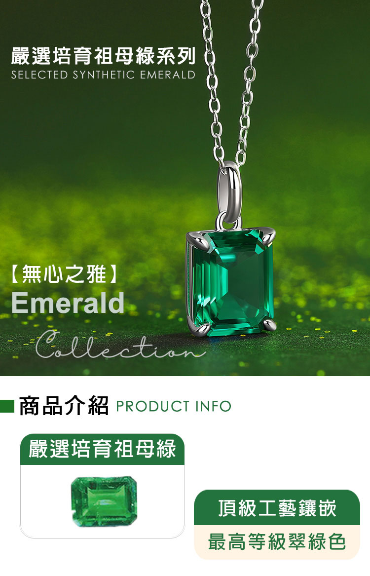 【CF鑽飾】項鍊 培育祖母綠《無心之雅》雙11限定禮物(情人節 哥倫比亞祖母綠 祖母綠項鍊 生日)