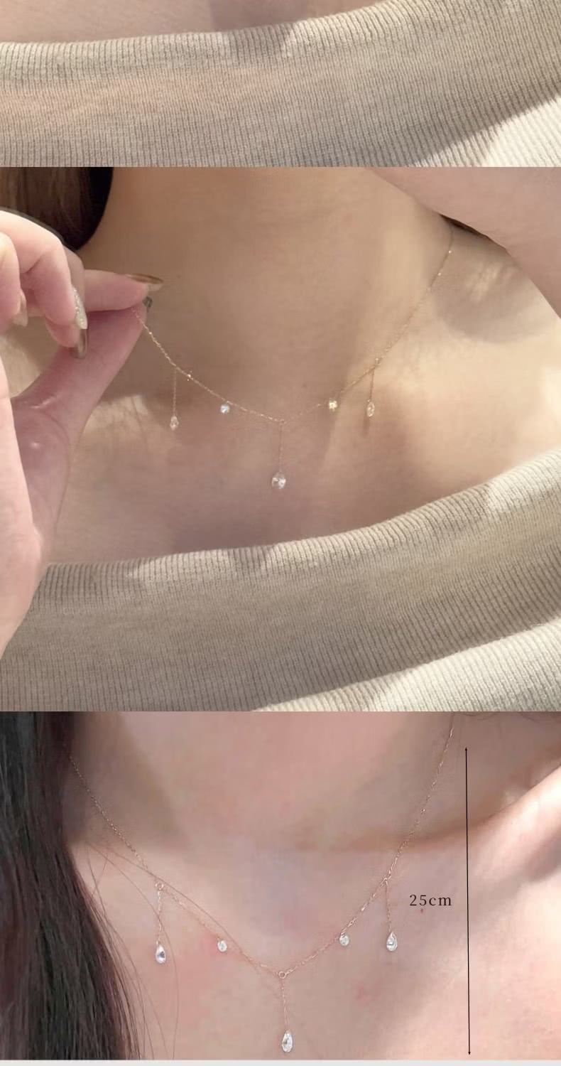 【氣質單品】輕奢滿天星水滴鑽石流蘇項鍊(細鍊 短鍊 鎖骨鍊 碎鑽 韓系清冷感 洋裝)