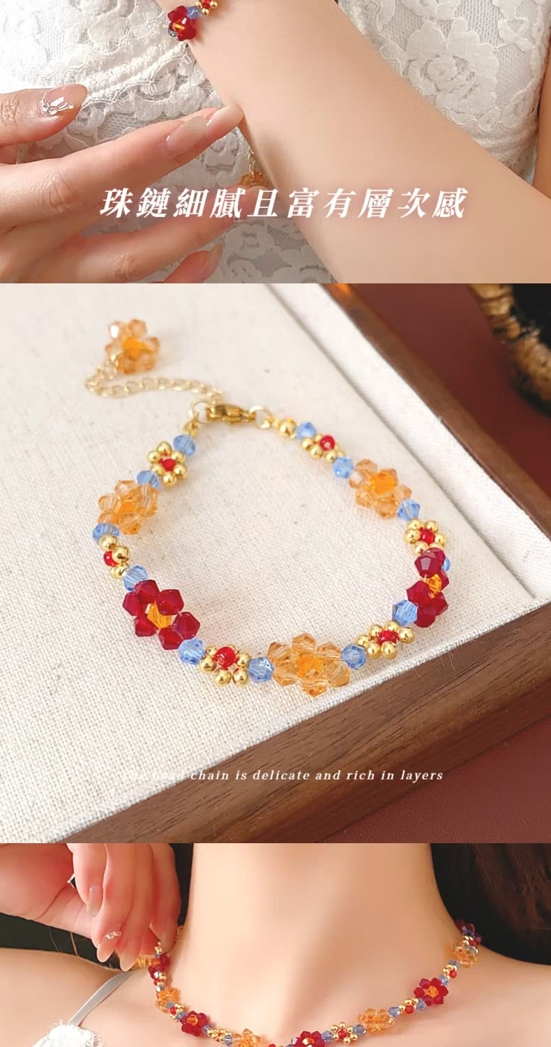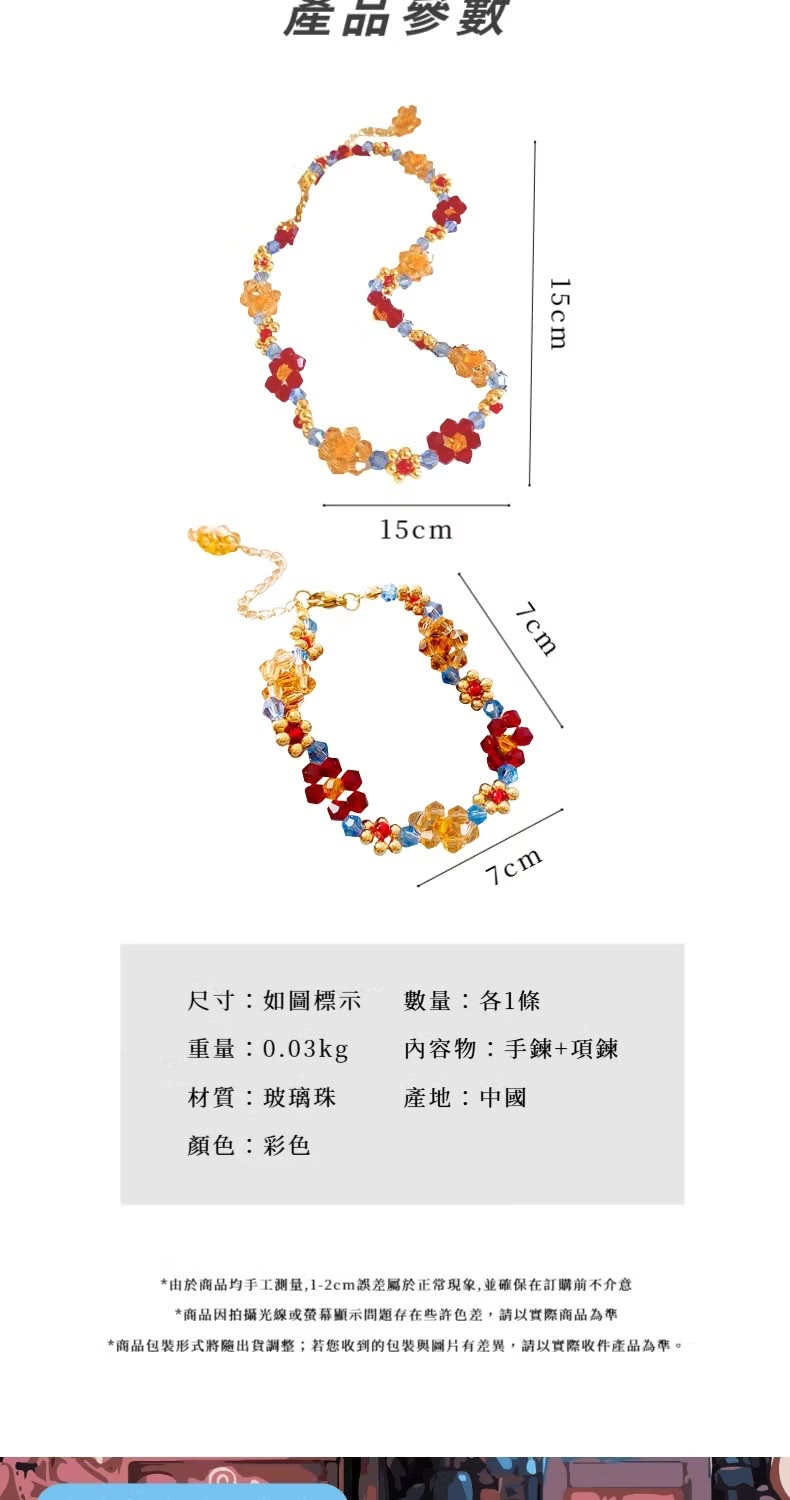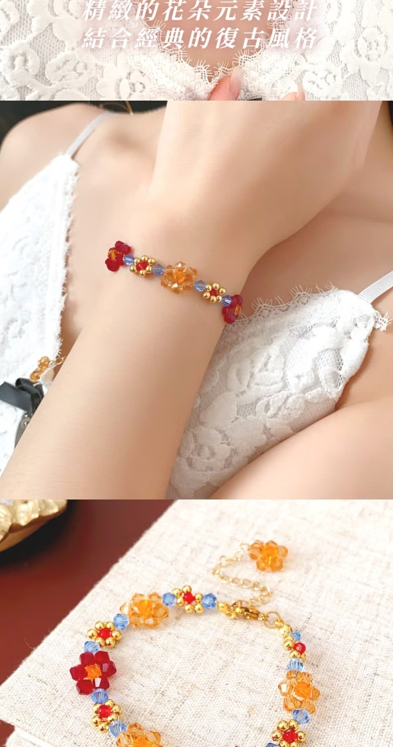 【彩色點睛】復古花朵串珠手鍊+項鍊(手串 手鏈 首飾 配飾 鎖骨鍊 氣質 穿搭 頸鍊 配件 百搭 禮物)
