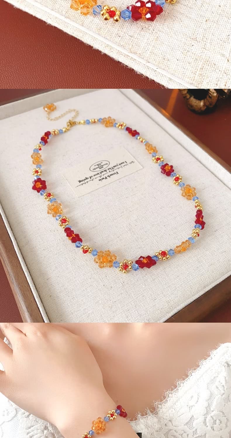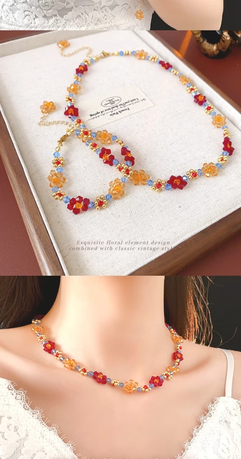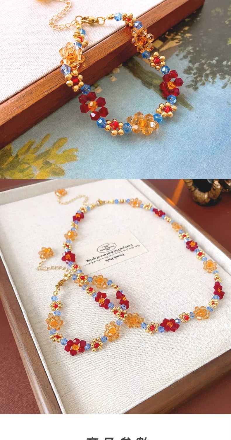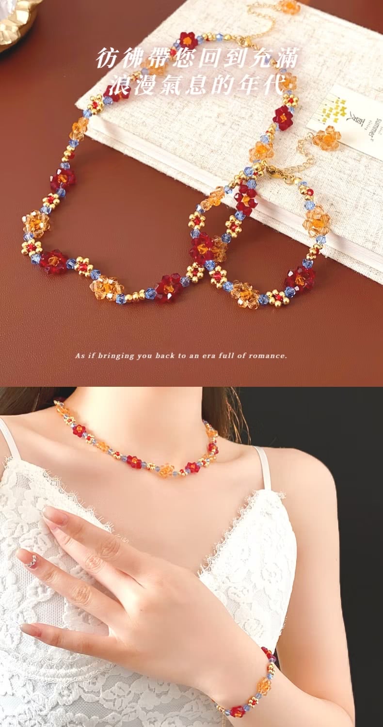 【彩色點睛】復古花朵串珠手鍊+項鍊(手串 手鏈 首飾 配飾 鎖骨鍊 氣質 穿搭 頸鍊 配件 百搭 禮物)