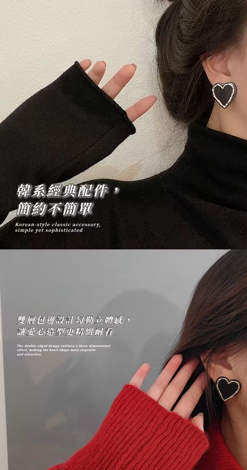 【韓系小物】韓系復古愛心包邊線條耳環(耳針 耳釘 耳飾 穿搭配件 飾品 復古 洋裝)