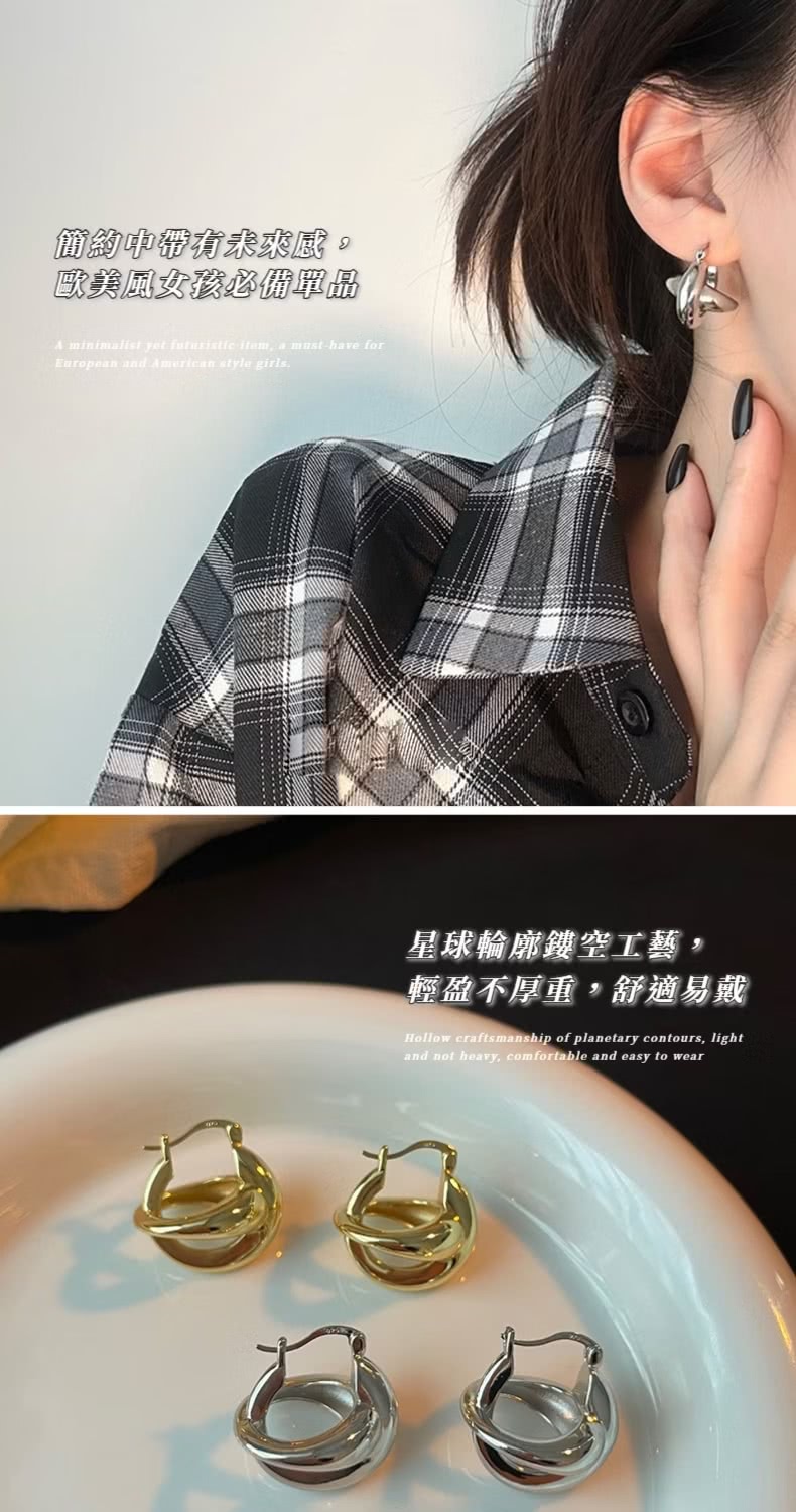 【小眾星球】歐美鏤空星球耳環1對(高級 冷淡 耳墜 飾品 耳針 耳釘 首飾 垂墜耳環 情人節 禮物)