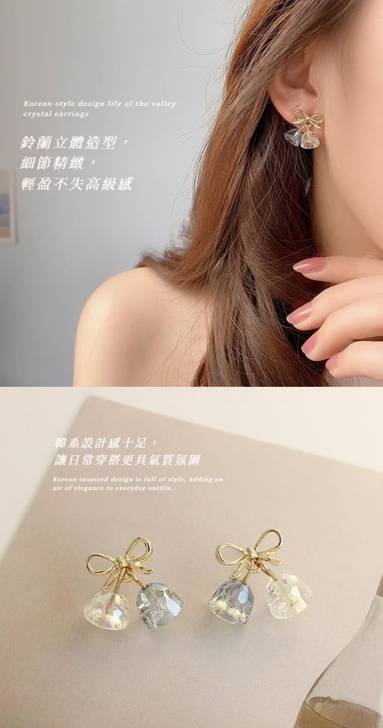 【森林系】韓系設計感鈴蘭花水晶耳環(耳針 耳釘 耳飾 穿搭配件 飾品 復古 洋裝)