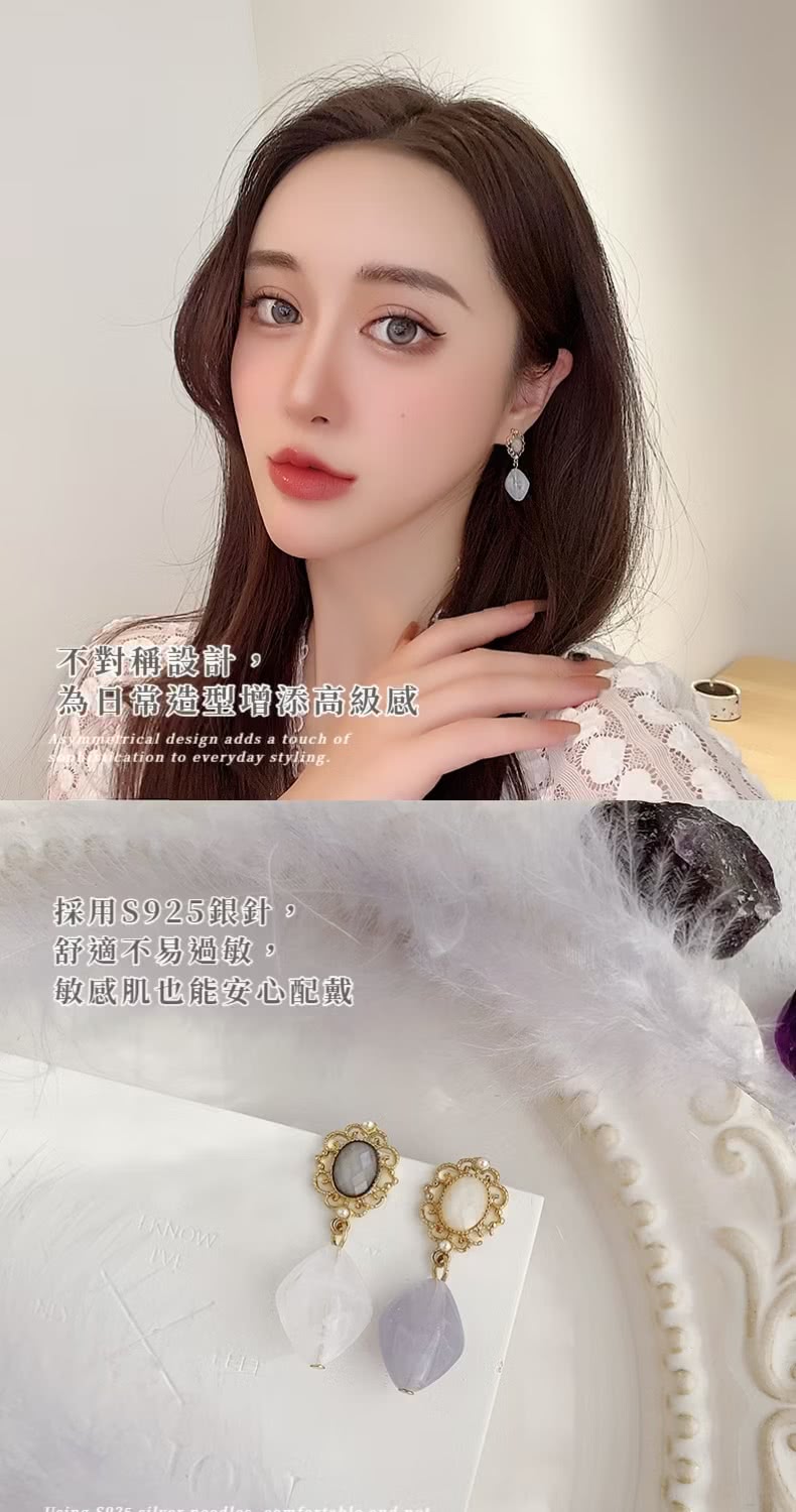 【巴洛克】S925銀針不對稱法式復古寶石耳環(耳針 耳釘 耳飾 穿搭配件 飾品 復古 洋裝)