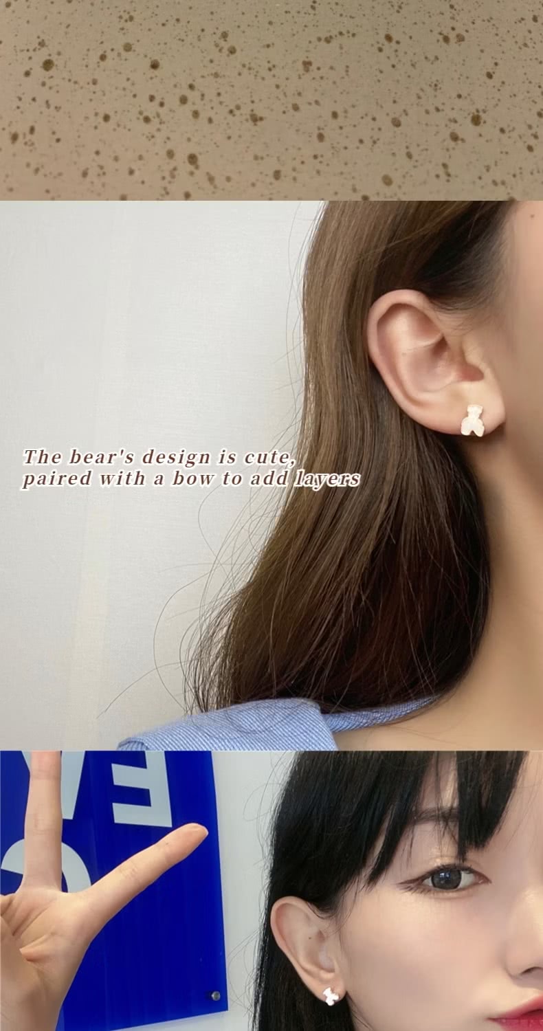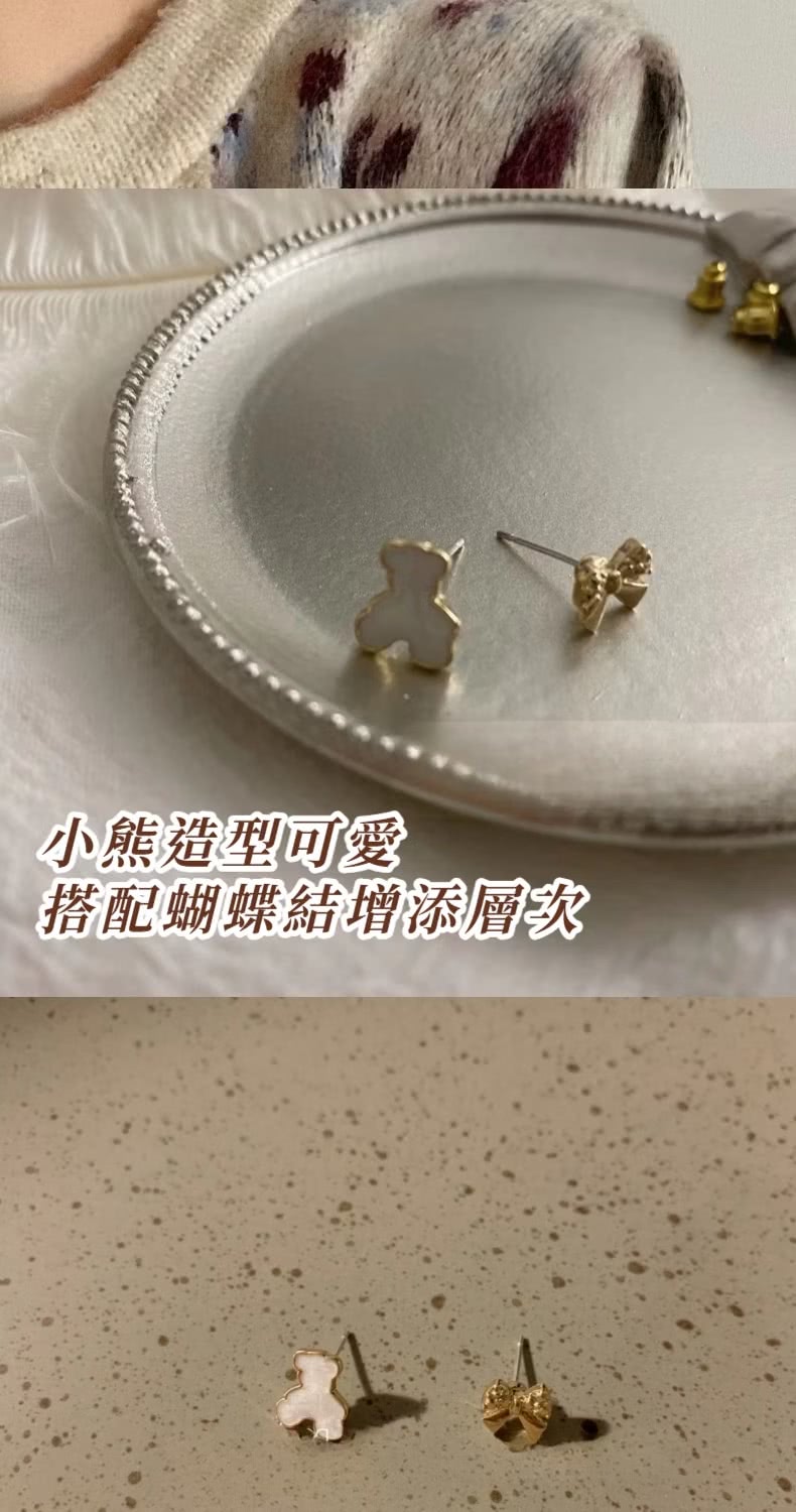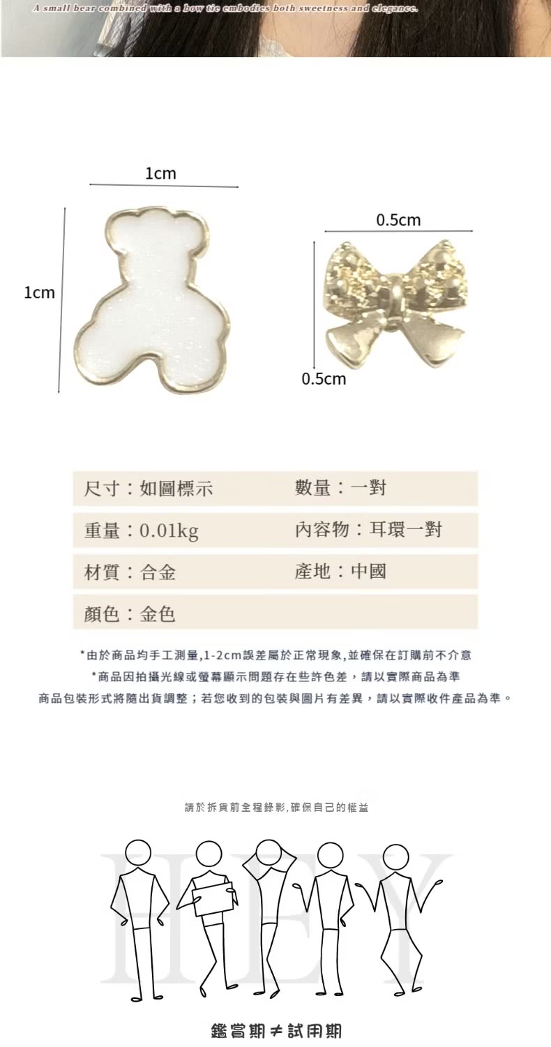 【精美小巧】精緻小香風小熊蝴蝶結耳環(不對稱 耳針 耳釘 耳飾 穿搭配件 飾品 復古 日常穿搭)