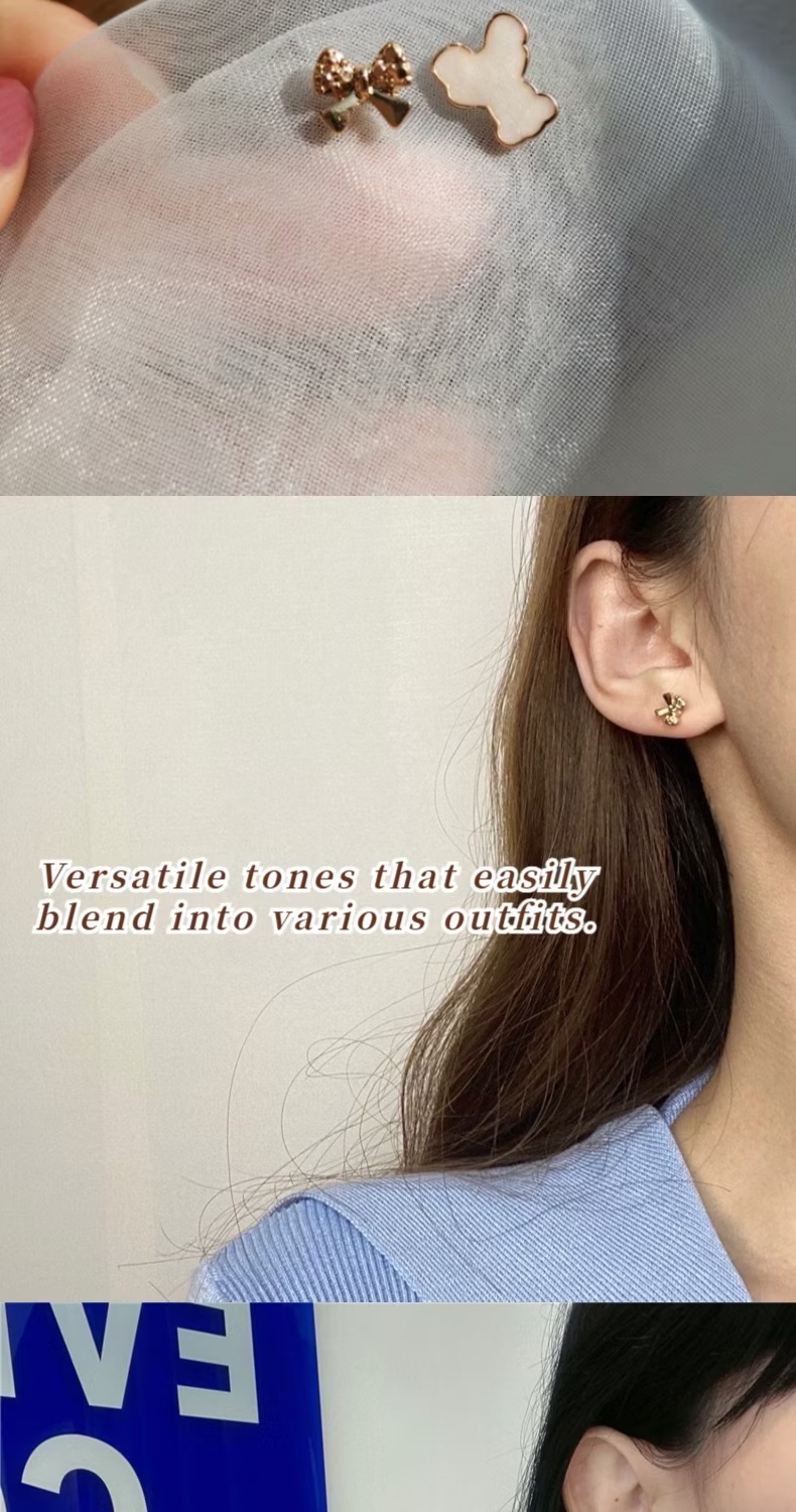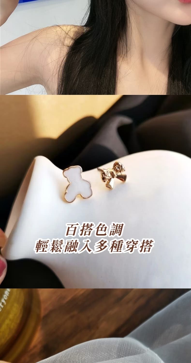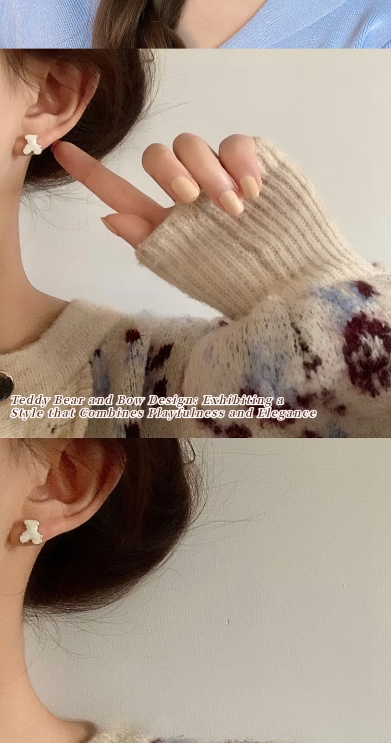 【精美小巧】精緻小香風小熊蝴蝶結耳環(不對稱 耳針 耳釘 耳飾 穿搭配件 飾品 復古 日常穿搭)