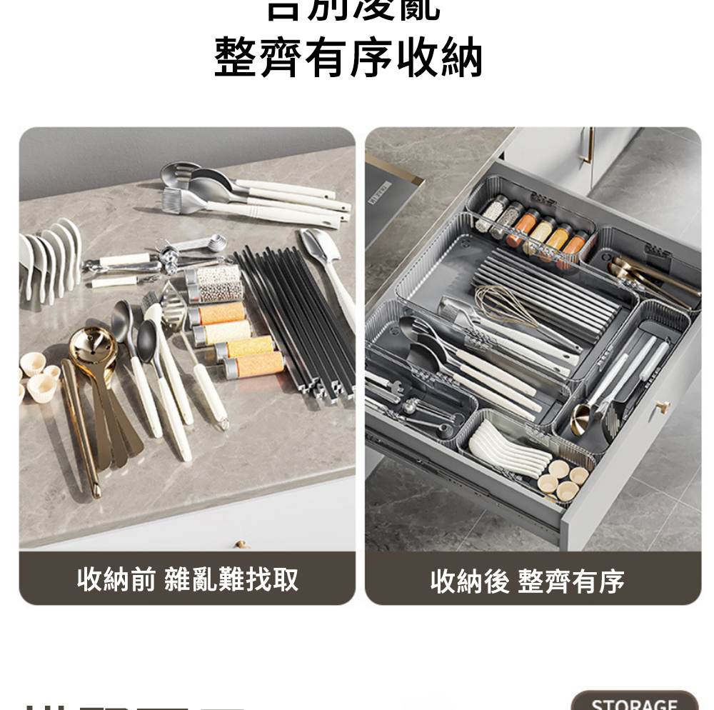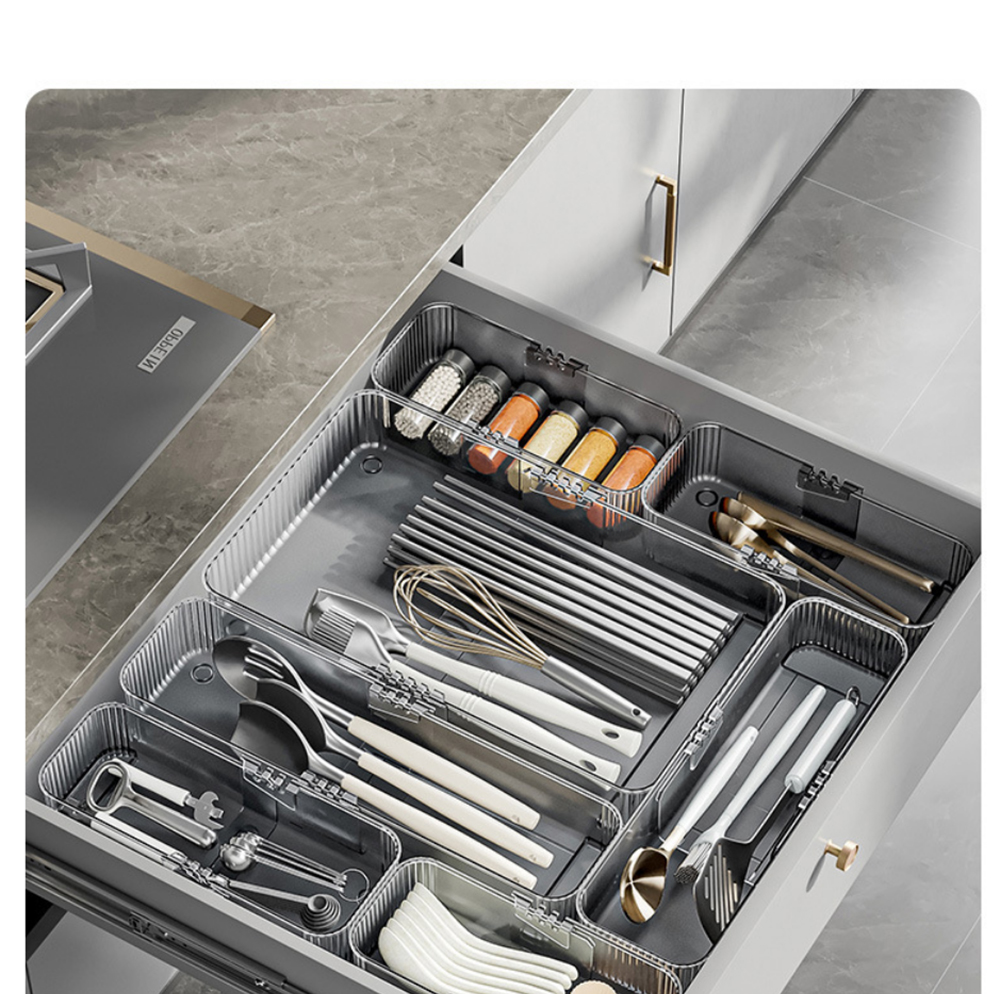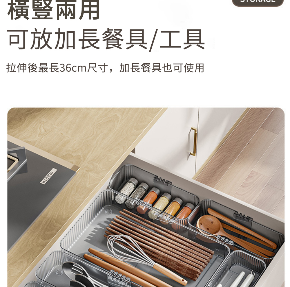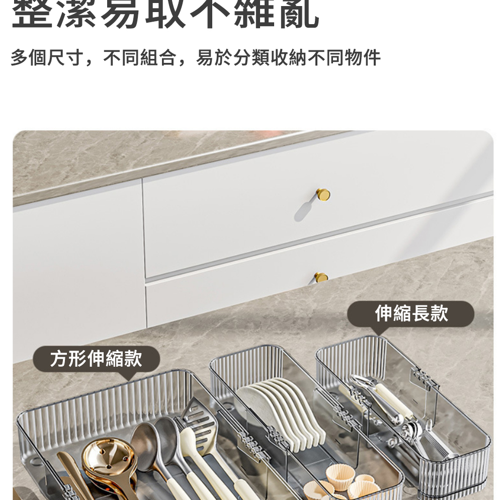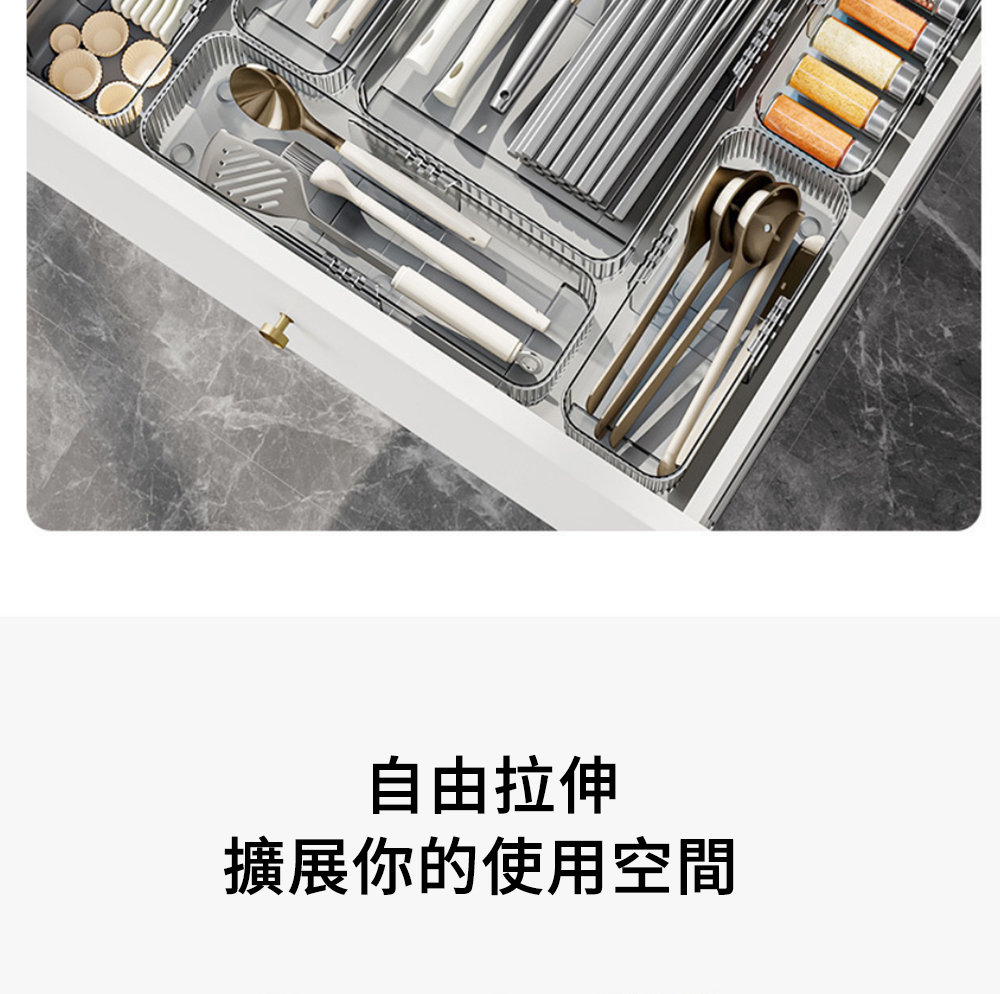 【MUAN】可自由分隔伸縮抽屜盒 廚房抽屜透明伸縮收納盒 筷子餐具置物盒(櫥櫃收納 梳妝台收納 文具收納)