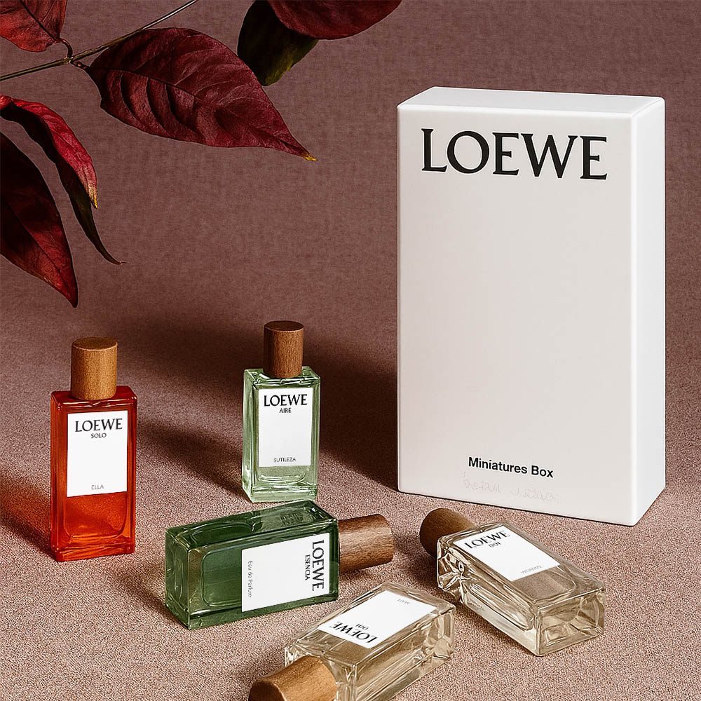 探索 LOEWE 香氛彩虹植物學系列中五款人氣經典香氣,精巧裝載於 7ml 迷你獨特方形瓶身,收納於質感香氛禮盒中。無論是他或她,皆能從大自然汲取的調香靈感中,透過千變萬化的色彩呈現,探索各種情緒與態度,找到屬於自己的獨特個性。